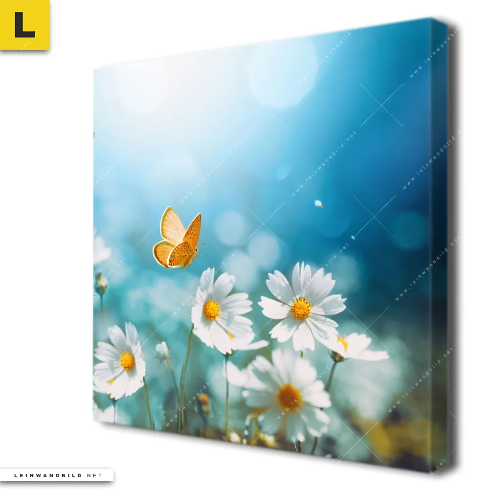Du konfigurierst Dein individuelles Leinwandbild | Sommerwiese mit Schmetterlingen | Quadrat und wir produzieren es NEU für Dich. Unsere Landschaften, Blumen - Botanik Leinwände sind KEINE Lagerware. Du bist Dir unsicher, welches Motiv oder Format das richtige für dein individuelles Keilrahmenbild ist, dann helfen wir dir gerne weiter und beraten dich!