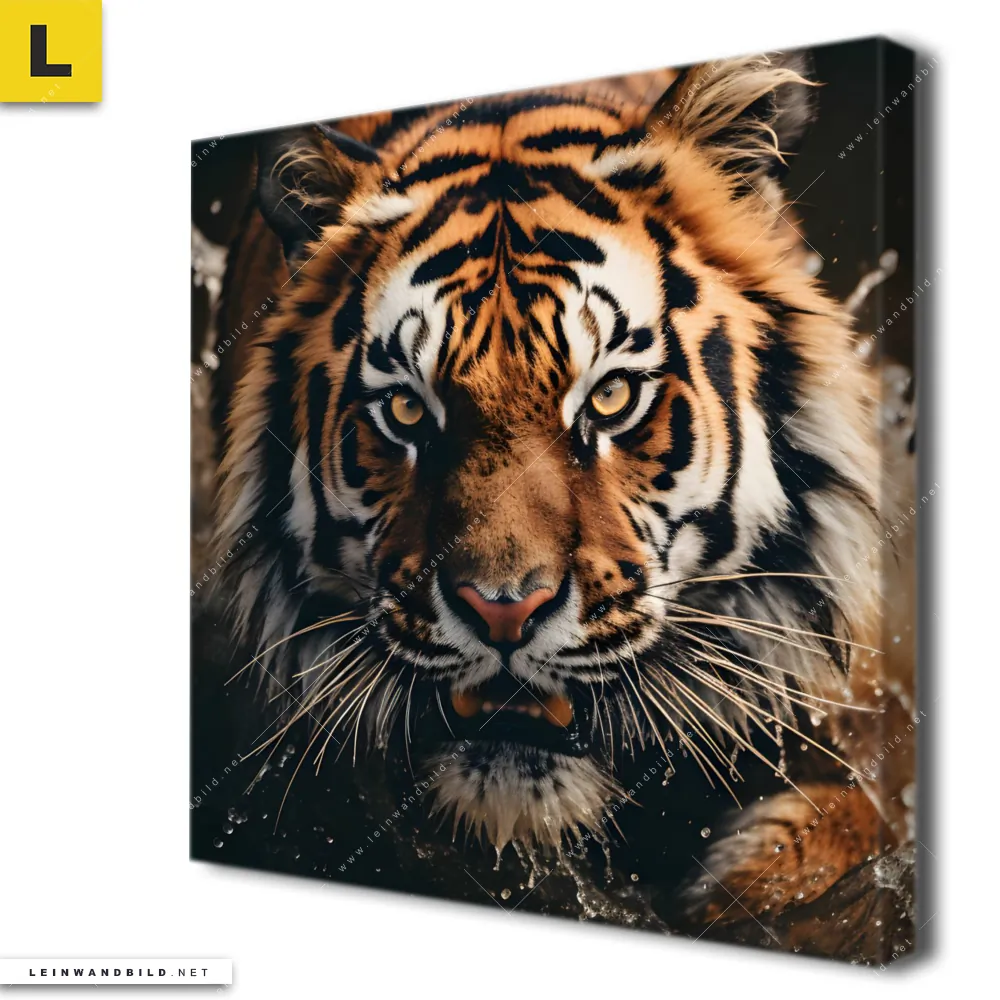 Du konfigurierst Dein individuelles Leinwandbild | Tiger im Wasser | Quadrat und wir produzieren es NEU für Dich. Unsere Tierwelt Leinwände sind KEINE Lagerware. Du bist Dir unsicher, welches Motiv oder Format das richtige für dein individuelles Keilrahmenbild ist, dann helfen wir dir gerne weiter und beraten dich!