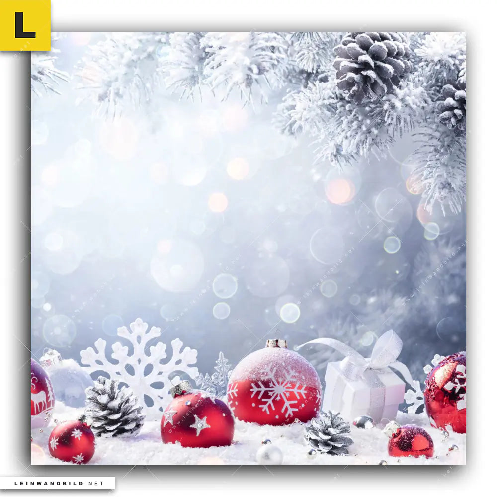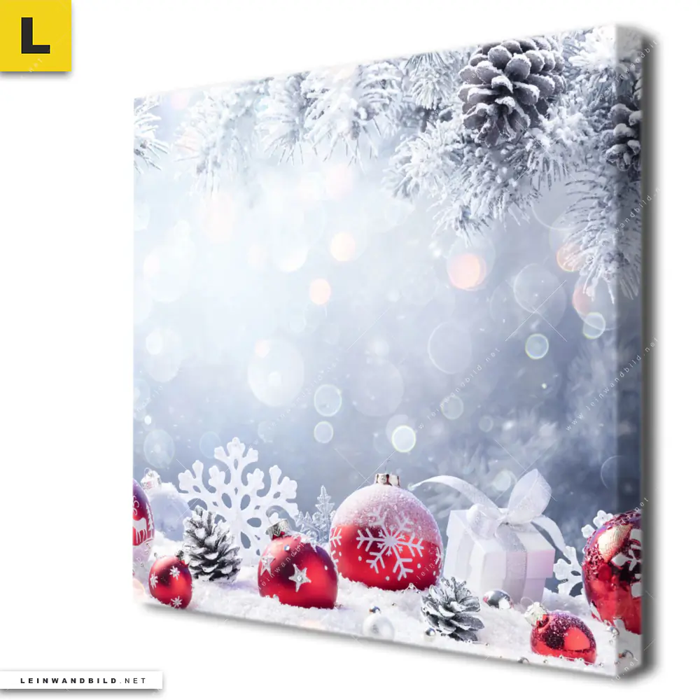 Du konfigurierst Dein individuelles Leinwandbild | Weihnachtskugeln im Winterwunderland | Quadrat und wir produzieren es NEU für Dich. Unsere Winter Leinwände sind KEINE Lagerware. Du bist Dir unsicher, welches Motiv oder Format das richtige für dein individuelles Keilrahmenbild ist, dann helfen wir dir gerne weiter und beraten dich!