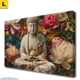 Leinwandbild | Buddha-Statue mit Blüten | Querformat