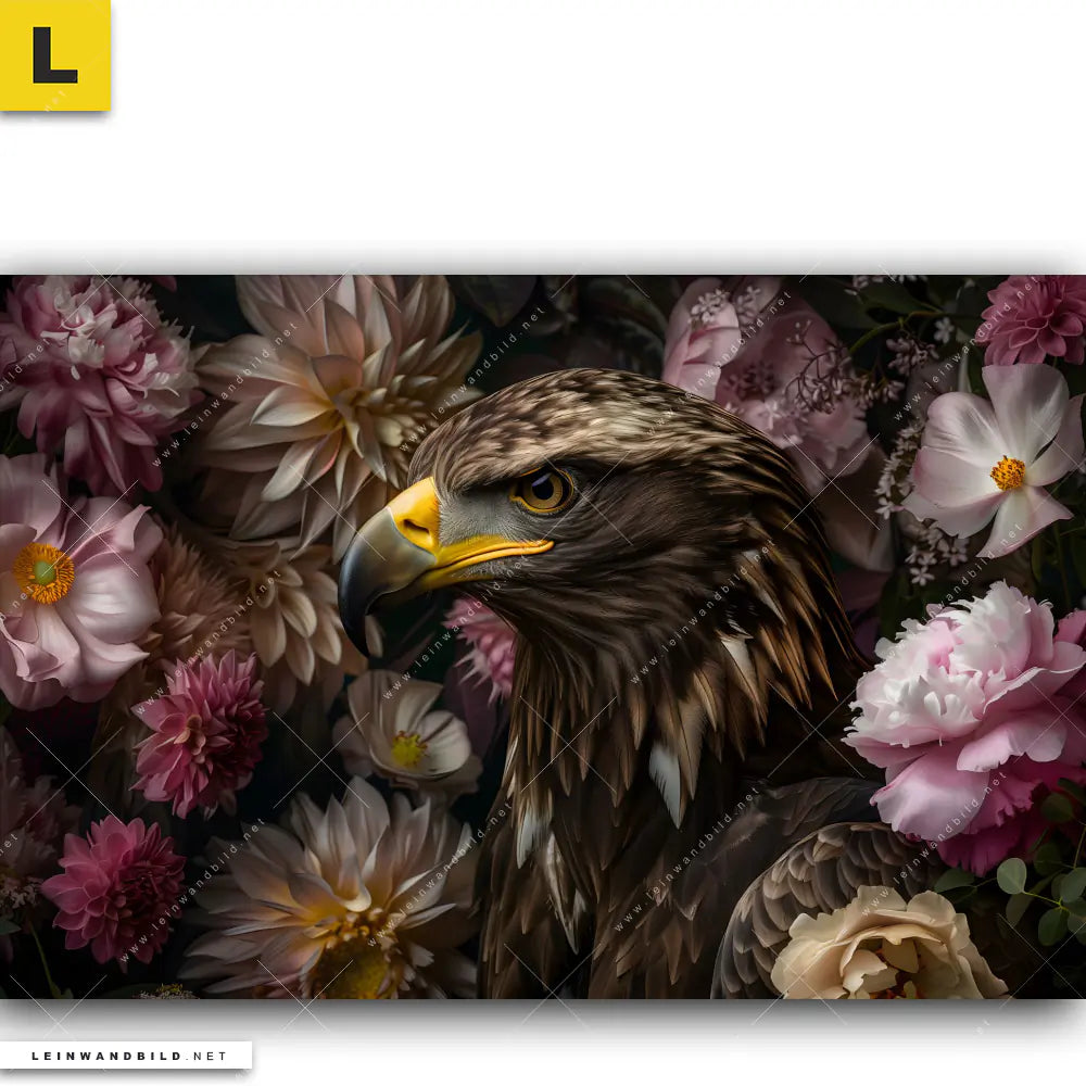 Leinwandbild | Florale Eleganz und Adlerblick | Querformat