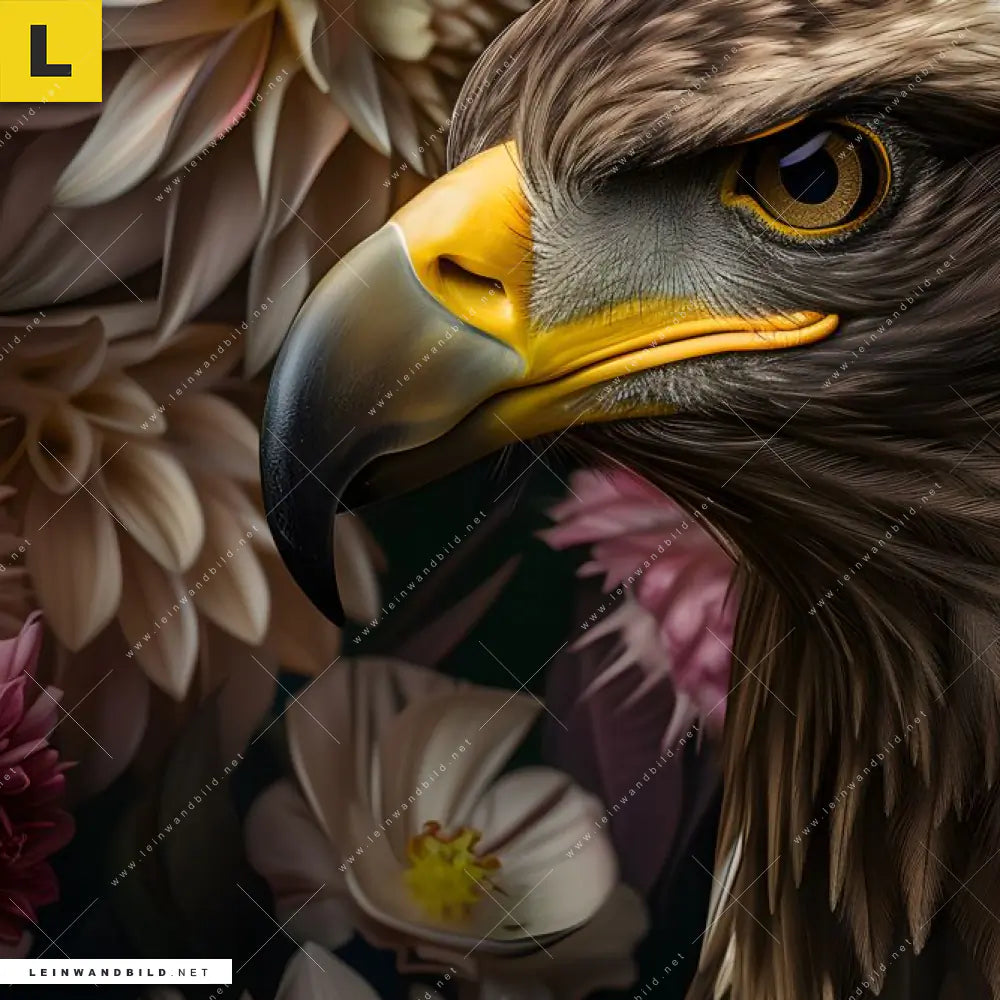 Du konfigurierst Dein individuelles Leinwandbild | Florale Eleganz und Adlerblick | Querformat und wir produzieren es NEU für Dich. Unsere Tierwelt, Blumen - Botanik Leinwände sind KEINE Lagerware. Du bist Dir unsicher, welches Motiv oder Format das richtige für dein individuelles Keilrahmenbild ist, dann helfen wir dir gerne weiter und beraten dich!