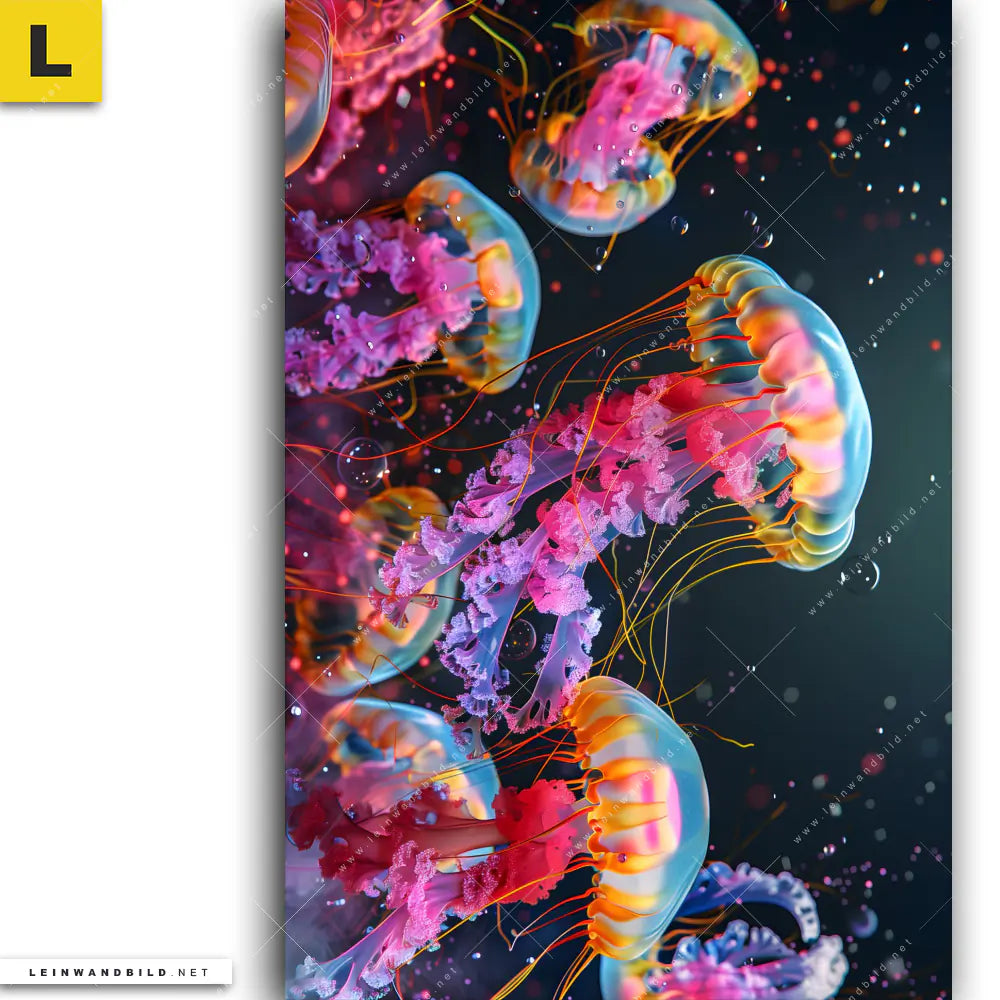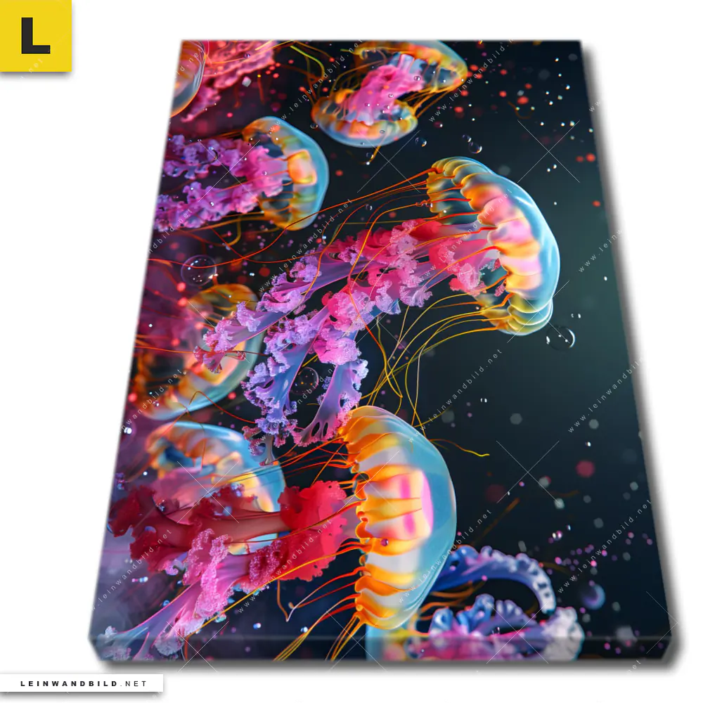 Du konfigurierst Dein individuelles Leinwandbild | Leuchtende Quallen unter Wasser | Hochformat und wir produzieren es NEU für Dich. Unsere Strand - Meer, Tierwelt Leinwände sind KEINE Lagerware. Du bist Dir unsicher, welches Motiv oder Format das richtige für dein individuelles Keilrahmenbild ist, dann helfen wir dir gerne weiter und beraten dich!