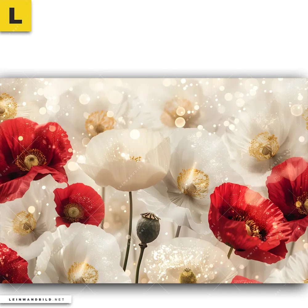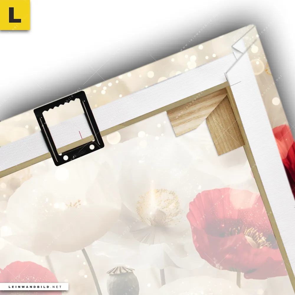 Du konfigurierst Dein individuelles Leinwandbild | Rote und weiße Mohnblumen | Querformat und wir produzieren es NEU für Dich. Unsere Blumen - Botanik Leinwände sind KEINE Lagerware. Du bist Dir unsicher, welches Motiv oder Format das richtige für dein individuelles Keilrahmenbild ist, dann helfen wir dir gerne weiter und beraten dich!