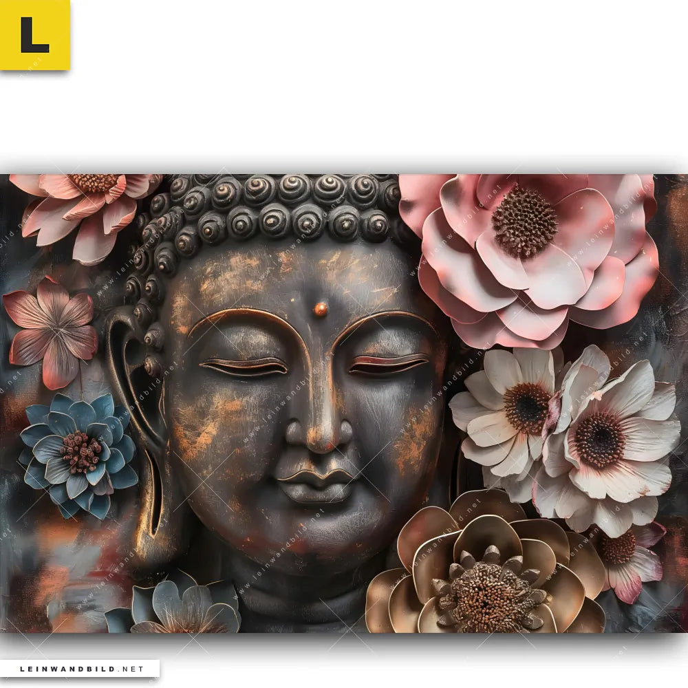 Leinwandbild | Spiritueller Buddha und Blumen | Querformat