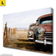 Leinwandbild | Weihnachtsmann füttert Rentier | Querformat