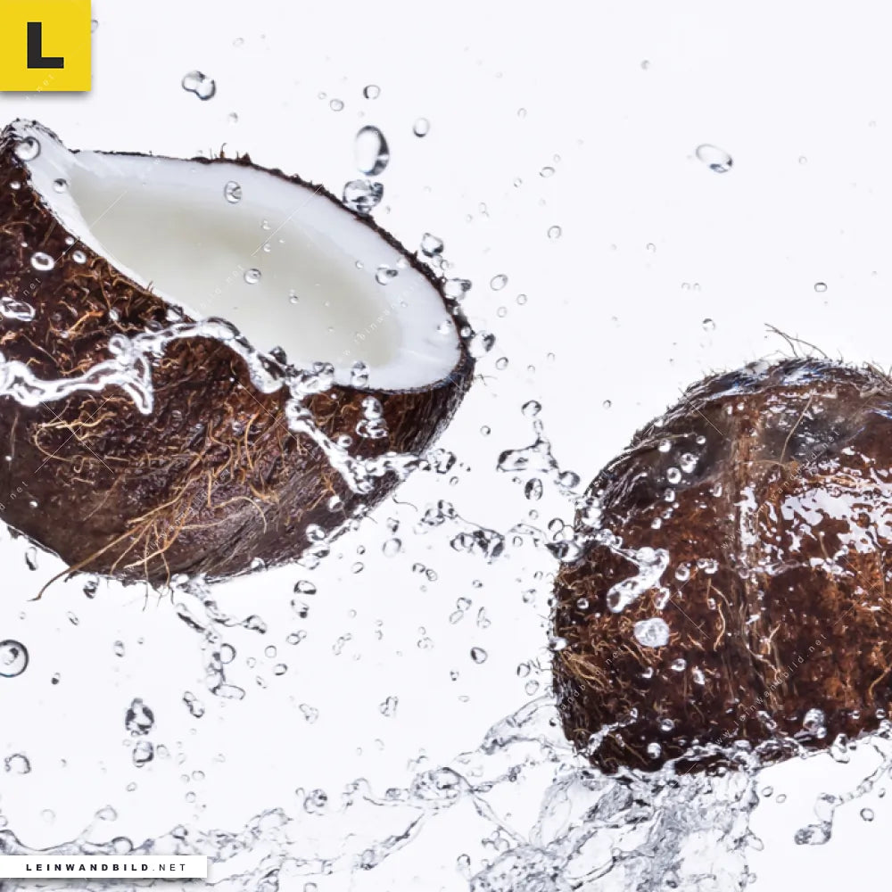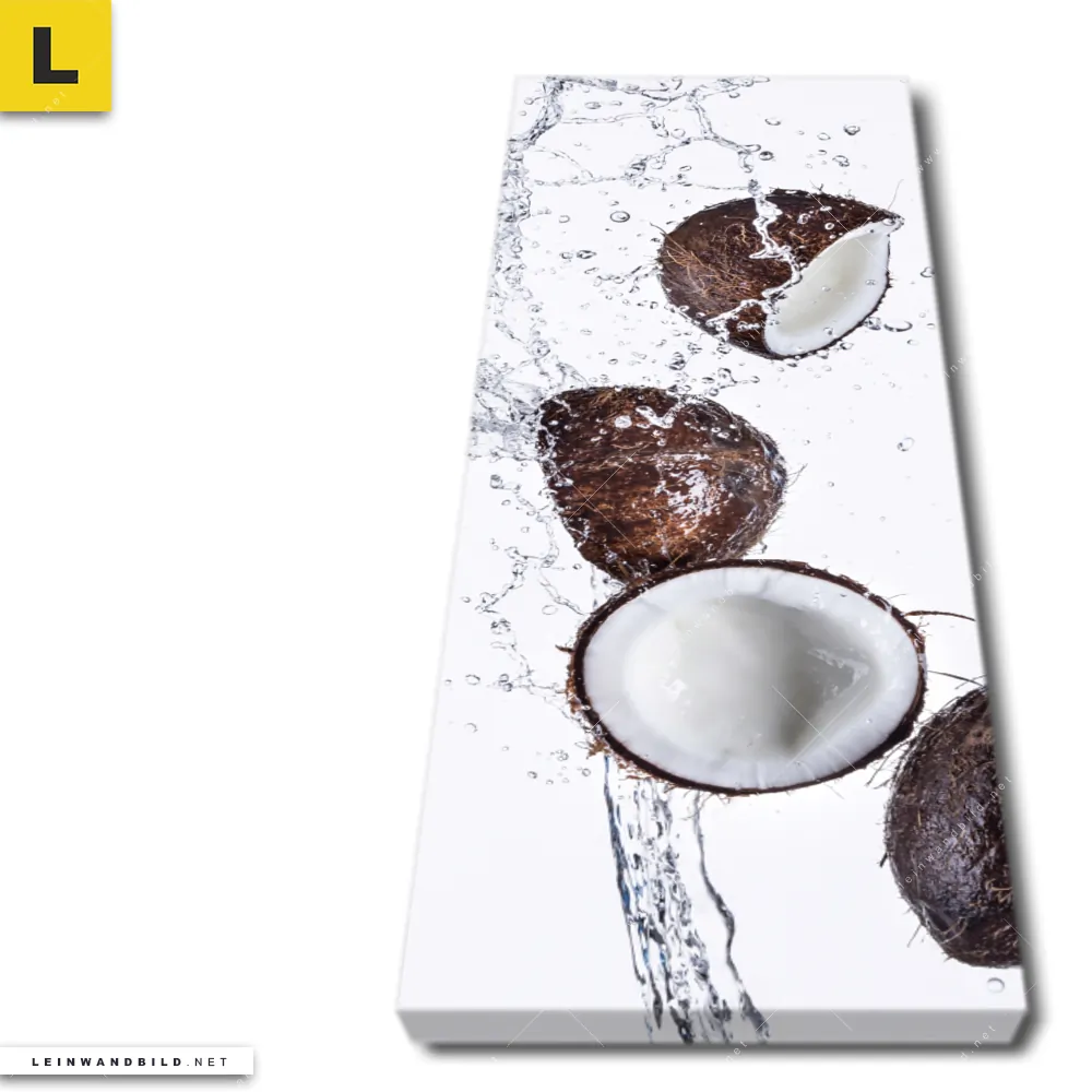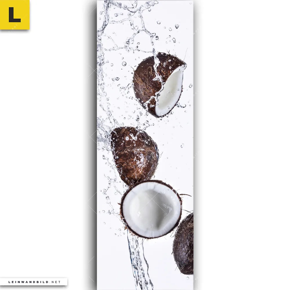 Du konfigurierst Dein individuelles Leinwandbild | Kokosnüsse mit Wasserspritzer | Schmal und wir produzieren es NEU für Dich. Unsere Essen - Trinken Leinwände sind KEINE Lagerware. Du bist Dir unsicher, welches Motiv oder Format das richtige für dein individuelles Keilrahmenbild ist, dann helfen wir dir gerne weiter und beraten dich!