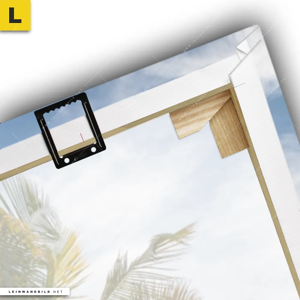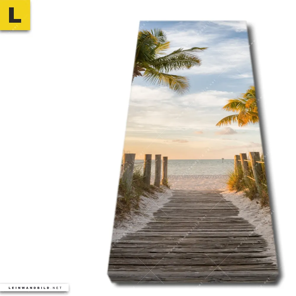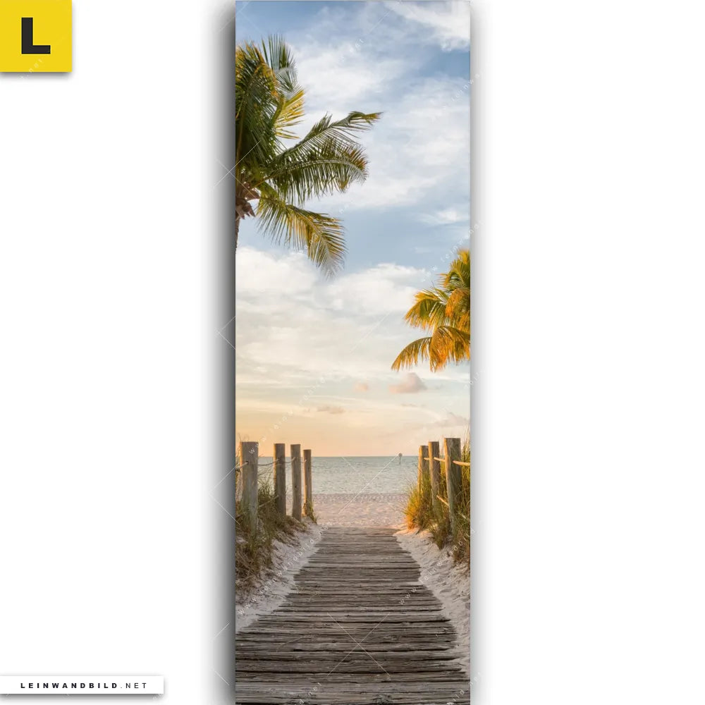 Du konfigurierst Dein individuelles Leinwandbild | Palmen am Strandweg | Schmal und wir produzieren es NEU für Dich. Unsere Landschaften, Strand - Meer Leinwände sind KEINE Lagerware. Du bist Dir unsicher, welches Motiv oder Format das richtige für dein individuelles Keilrahmenbild ist, dann helfen wir dir gerne weiter und beraten dich!