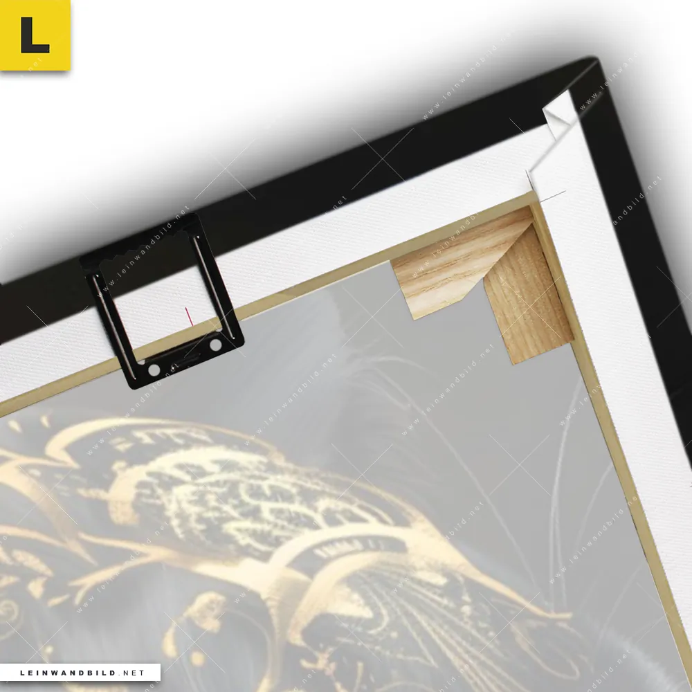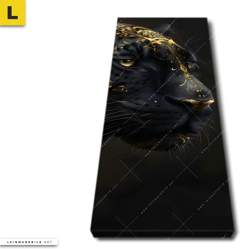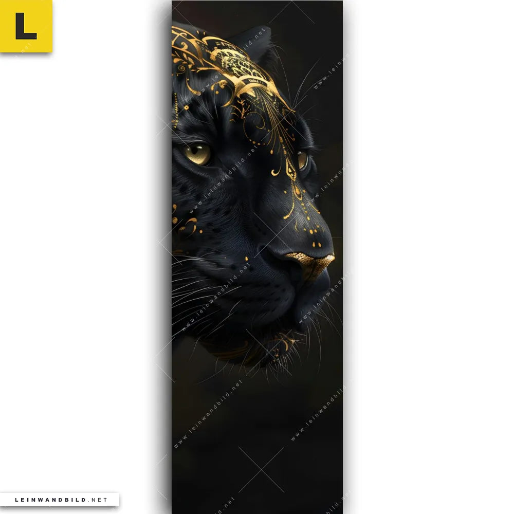 Du konfigurierst Dein individuelles Leinwandbild | Panther mit goldenen Ornamenten | Schmal und wir produzieren es NEU für Dich. Unsere Tierwelt Leinwände sind KEINE Lagerware. Du bist Dir unsicher, welches Motiv oder Format das richtige für dein individuelles Keilrahmenbild ist, dann helfen wir dir gerne weiter und beraten dich!