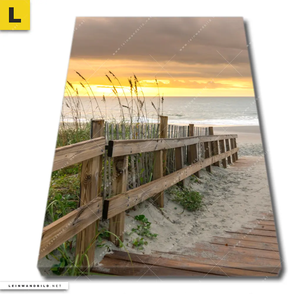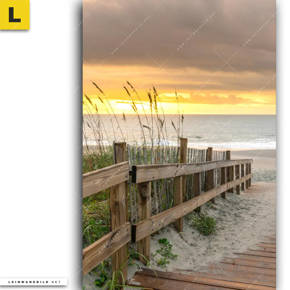 Du konfigurierst Dein individuelles Leinwandbild | Sonnenuntergang am Strandweg | Hochformat und wir produzieren es NEU für Dich. Unsere Strand - Meer, Landschaften Leinwände sind KEINE Lagerware. Du bist Dir unsicher, welches Motiv oder Format das richtige für dein individuelles Keilrahmenbild ist, dann helfen wir dir gerne weiter und beraten dich!