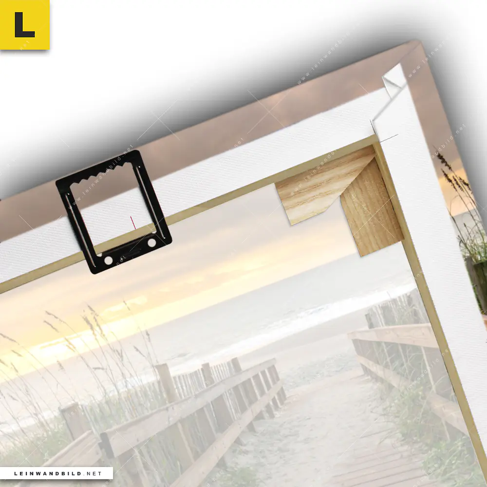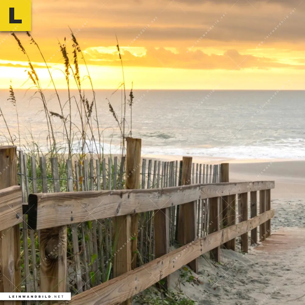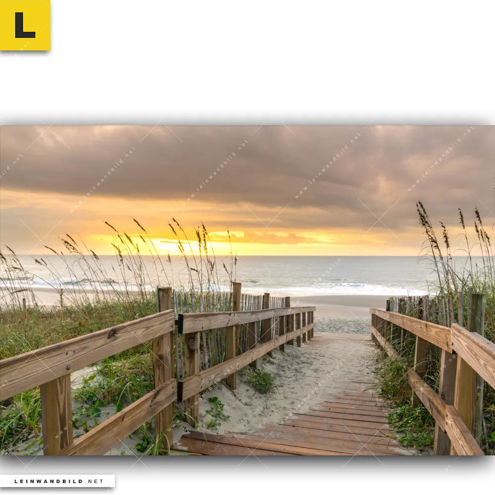 Du konfigurierst Dein individuelles Leinwandbild | Sonnenuntergang am Strandweg | Querformat und wir produzieren es NEU für Dich. Unsere Strand - Meer, Landschaften Leinwände sind KEINE Lagerware. Du bist Dir unsicher, welches Motiv oder Format das richtige für dein individuelles Keilrahmenbild ist, dann helfen wir dir gerne weiter und beraten dich!