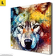 Leinwandbild | Wolf mit bunten Farbspritzern No. 2 | Querformat