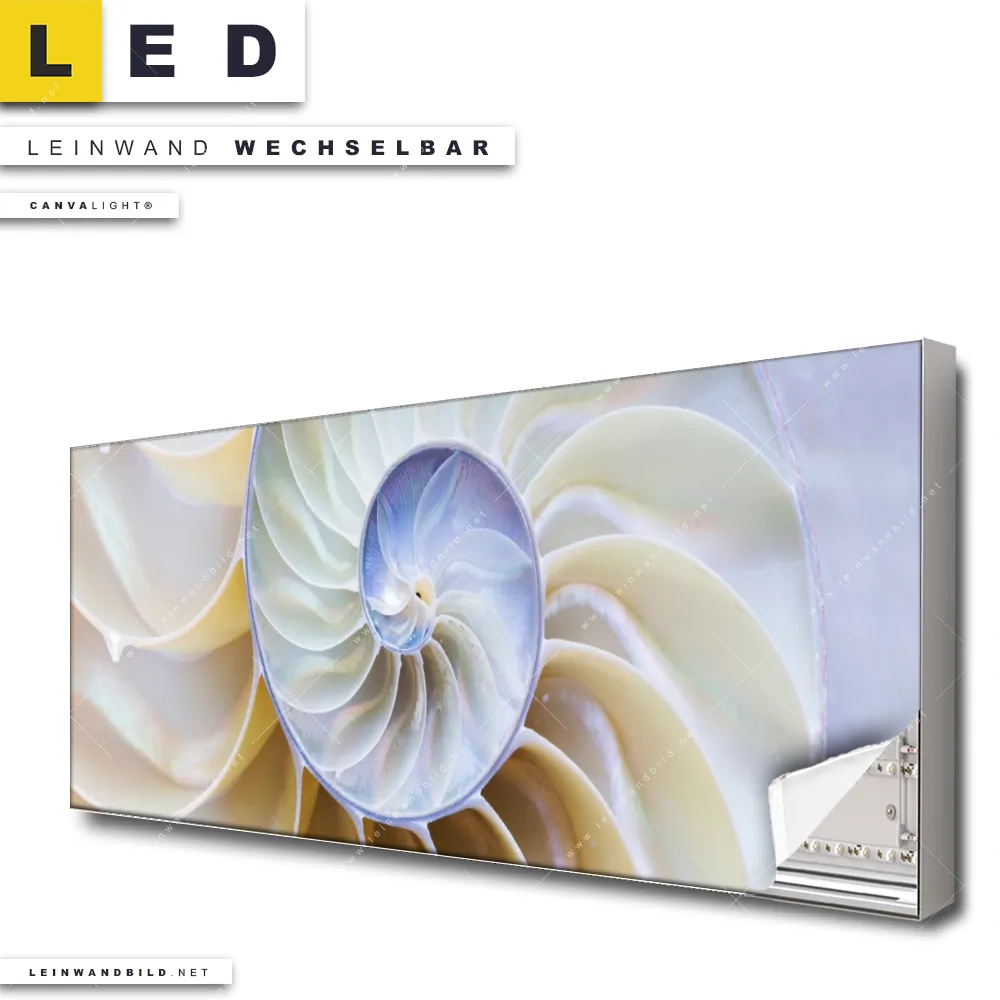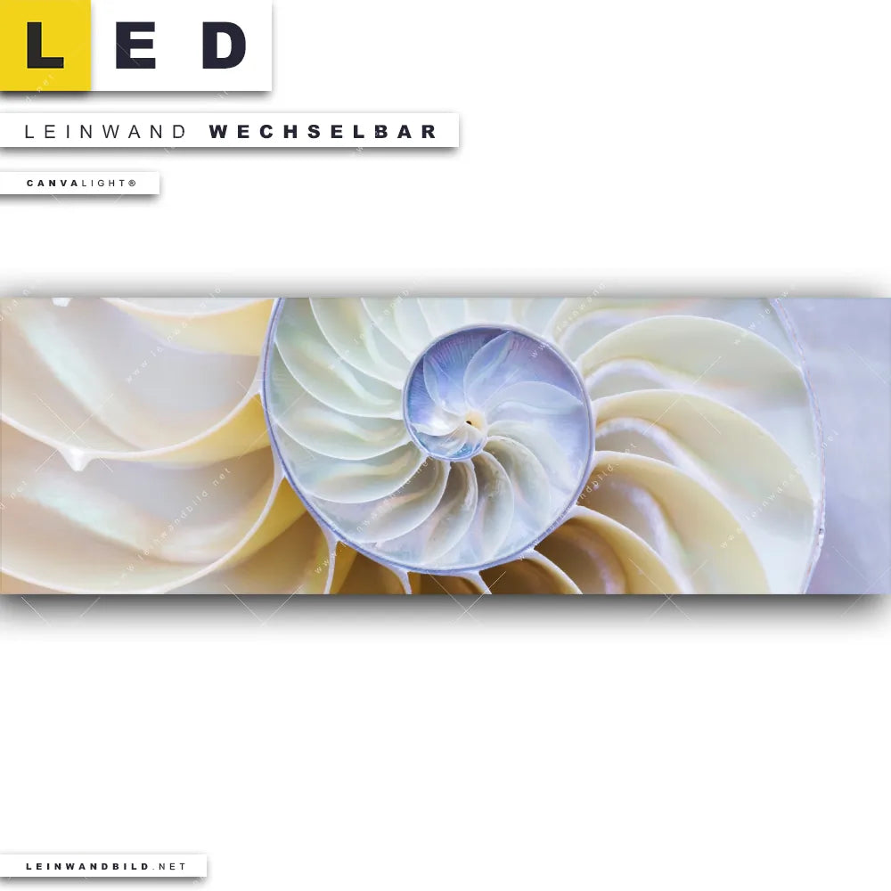 Du bist auf der Suche nach einem Muster - Texturen LED Leinwandbild im Panorama-Format? Begriffe wie Muschel, Nahaufnahme, Makro, Fossil, close up, Spiarale haben Dich auf der Suche nach Deinem neuen XXL LED Wandbild mit wechselbarer Leinwand inspiriert? Farben wie Weiss, Beige, Lila dürfen auf Deinem neuen extra breiten Leinwand-LED-Bild nicht fehlen und Leuchtbilder im Abstrakt, Modern Art, Geometrisch Stil passen perfekt zu Deinem Einrichtungsstil?
