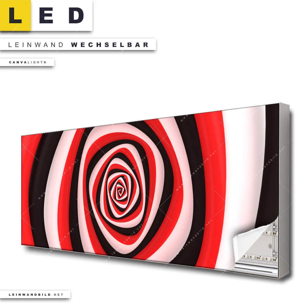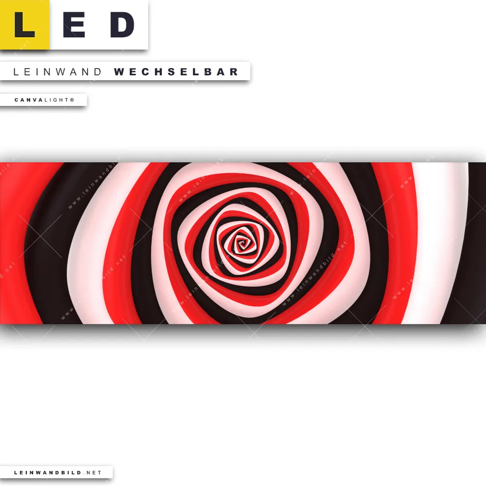 LED Leinwandbild Canvalight® TEX | Spirale in rot weiß schwarz | Panorama