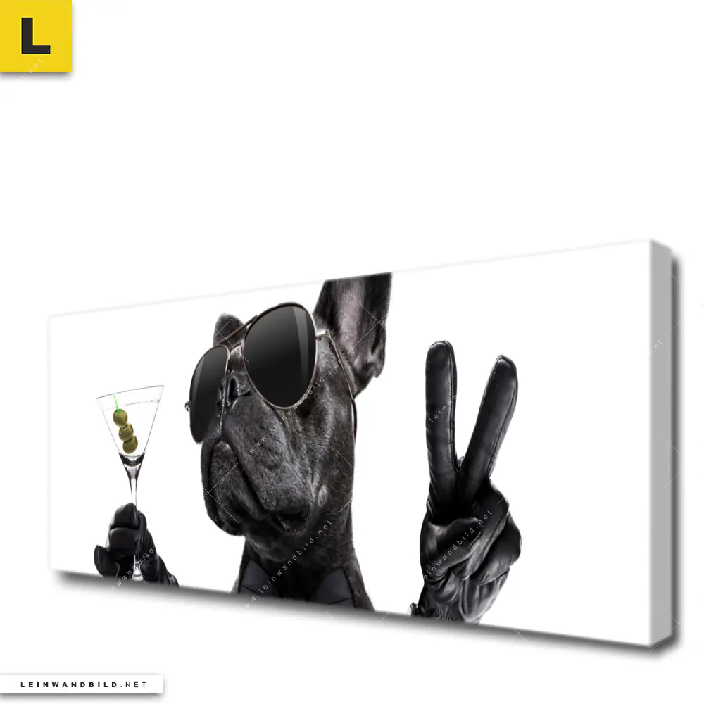 Du konfigurierst Dein individuelles Leinwandbild | Bulldogge mit Martini | Panorama und wir produzieren es NEU für Dich. Unsere Tierwelt, Essen - Trinken Leinwände sind KEINE Lagerware. Du bist Dir unsicher, welches Motiv oder Format das richtige für dein individuelles Keilrahmenbild ist, dann helfen wir dir gerne weiter und beraten dich!