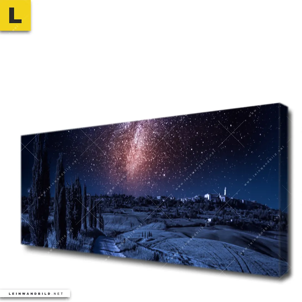 Du konfigurierst Dein individuelles Leinwandbild | Milchstraße über einem Feldweg | Panorama und wir produzieren es NEU für Dich. Unsere Landschaften Leinwände sind KEINE Lagerware. Du bist Dir unsicher, welches Motiv oder Format das richtige für dein individuelles Keilrahmenbild ist, dann helfen wir dir gerne weiter und beraten dich!