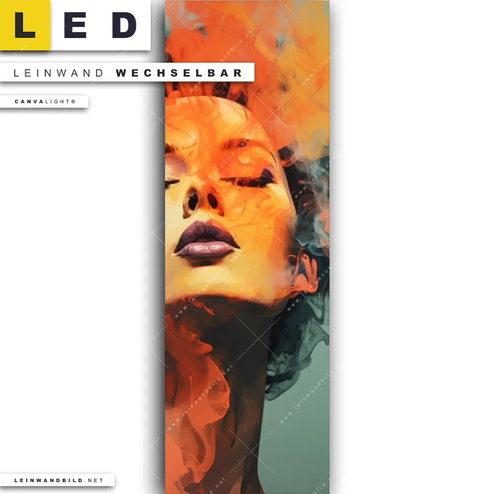 LED Leinwandbild Canvalight® TEX | Frau mit buntem Rauch | Schmal