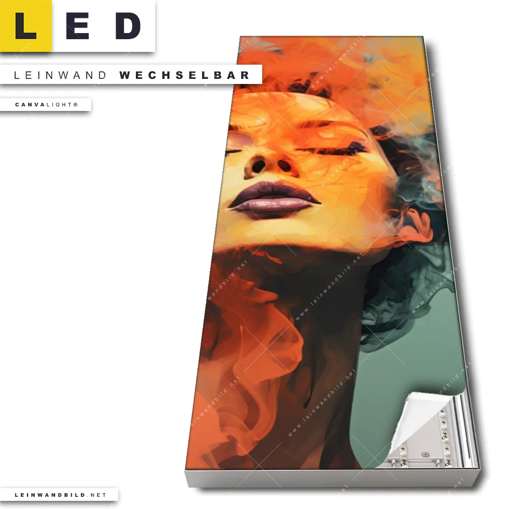 Du bist auf der Suche nach einem Porträts - Menschen LED Leinwandbild im Schmalen Format? Begriffe wie Emotion, Leidenschaft, Freiheit haben Dich auf der Suche nach Deinem neuen XXL LED Wandbild mit wechselbarer Leinwand inspiriert? Farben wie Orange, Lila, Mint, Hellgrün dürfen auf Deinem neuen Leinwand-LED-Bild im Panorama-Hochformat nicht fehlen und Leuchtbilder im Modern Art, Abstrakt, Surreal - Fantasy Stil passen perfekt zu Deinem Einrichtungsstil?
