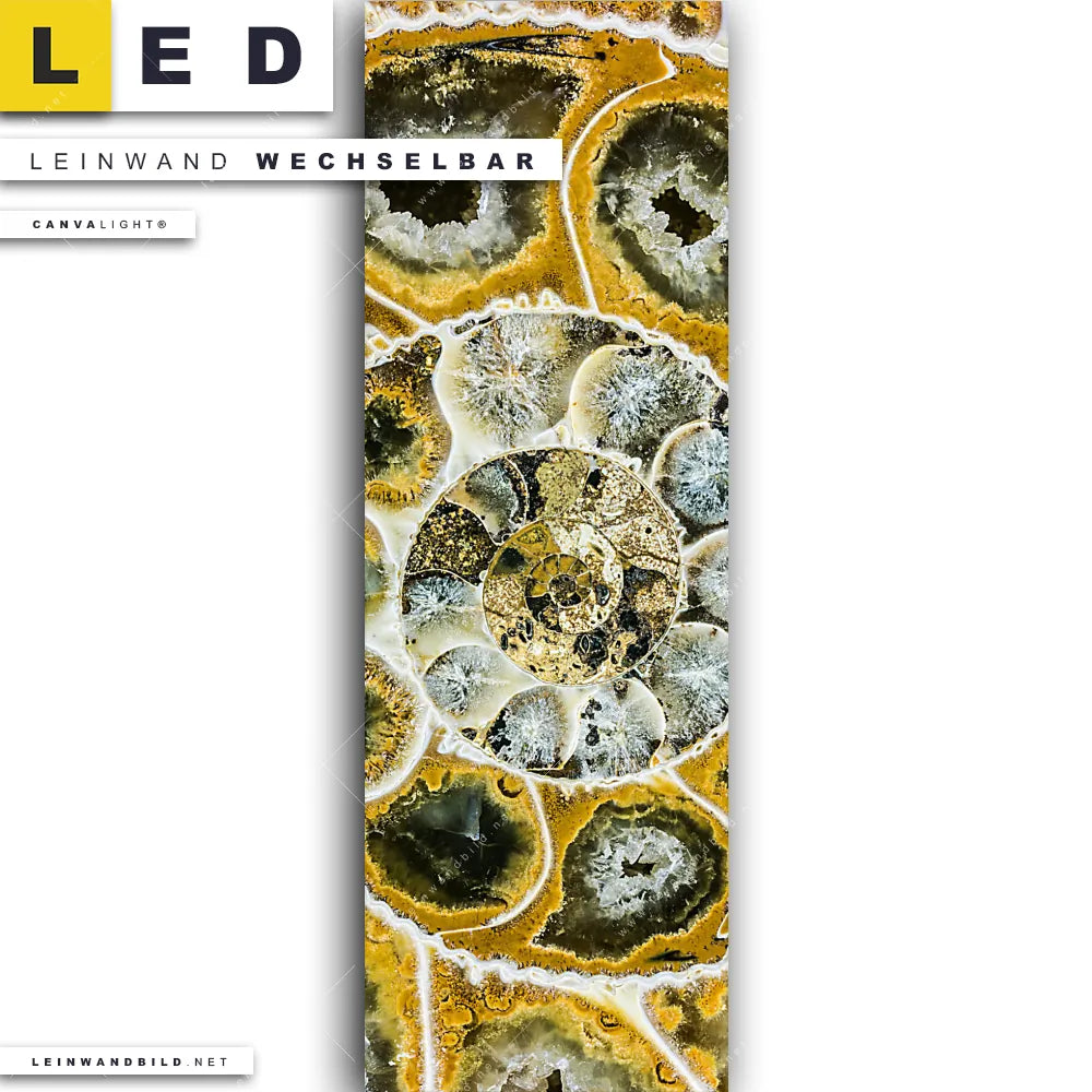 Du bist auf der Suche nach einem Muster - Texturen LED Leinwandbild im Schmalen Format? Begriffe wie Muschel, Nahaufnahme, Makro, Fossil, close up, Spiarale haben Dich auf der Suche nach Deinem neuen XXL LED Wandbild mit wechselbarer Leinwand inspiriert? Farben wie Gold, Braun, Beige, Ocker, Hellblau dürfen auf Deinem neuen Leinwand-LED-Bild im Panorama-Hochformat nicht fehlen und Leuchtbilder im Abstrakt, Modern Art, Geometrisch Stil passen perfekt zu Deinem Einrichtungsstil?