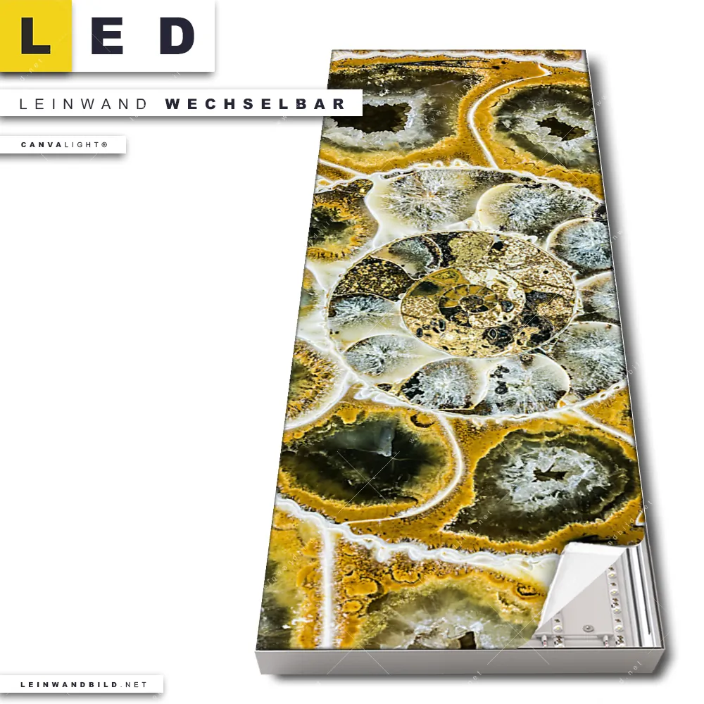 Dann sollte das LED Leinwandbild Canvalight® TEX | Muschel Fossil No. 1 | Schmal den Weg zu Dir finden. Das stufenlos dimmbare Leinwandbild schneckenförmiges Fossil im steckerfertigen Leuchtrahmen mit Fernbedienung und optionaler Farbtemperatursteuerung fügt sich als Eye-Catcher harmonisch in jedes Arzt - Praxis, Büro - Kanzlei, Wohnzimmer - Schlafzimmer Raumkonzept ein.