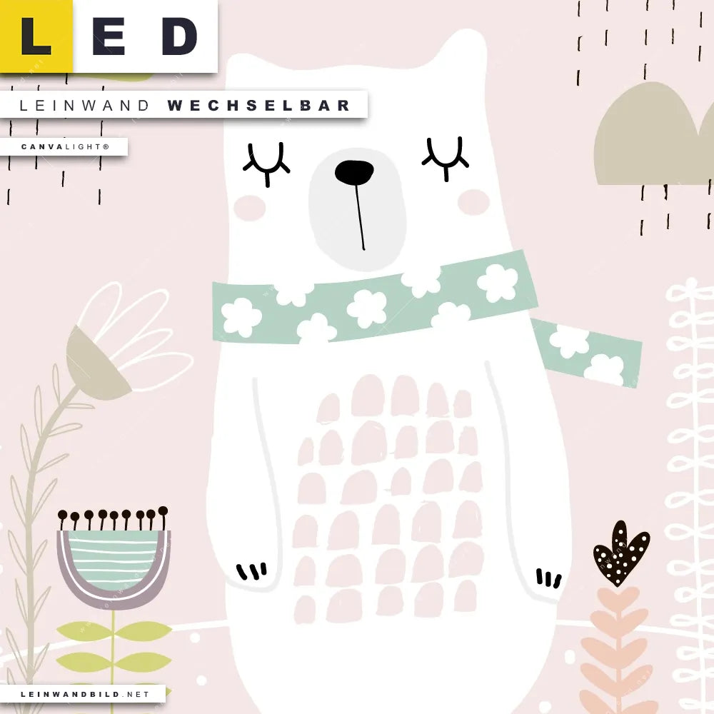 Begriffe wie Kinder, Tiere, Kunst, Freunde, Nachtlicht, Eisbär, träumen haben Dich auf der Suche nach Deinem neuen LED Wandbild mit beleuchteter Leinwand inspiriert? Dann sollte das LED Bild Eisbär Kindermotiv mit austauschbarer Textil-Fotoleinwand den Weg zu Dir finden.