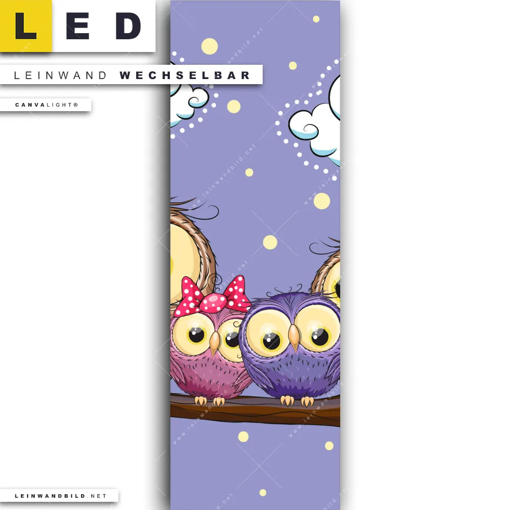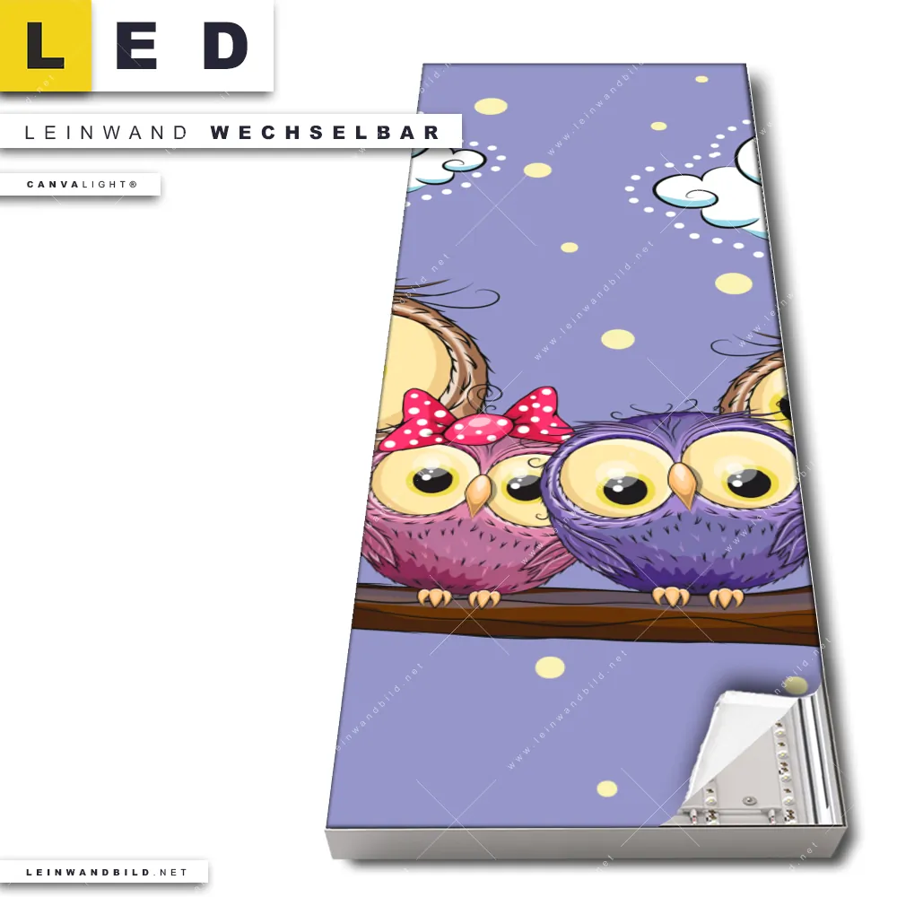 Du bist auf der Suche nach einem Tierwelt LED Leinwandbild im Schmalen Format? Begriffe wie Eulen, Kinder, Tiere, Kunst, Freunde, Nachtlicht, Eule haben Dich auf der Suche nach Deinem neuen XXL LED Wandbild mit wechselbarer Leinwand inspiriert? Farben wie Lila, Braun, Beige dürfen auf Deinem neuen Leinwand-LED-Bild im Panorama-Hochformat nicht fehlen und Leuchtbilder im Modern Art Stil passen perfekt zu Deinem Einrichtungsstil?