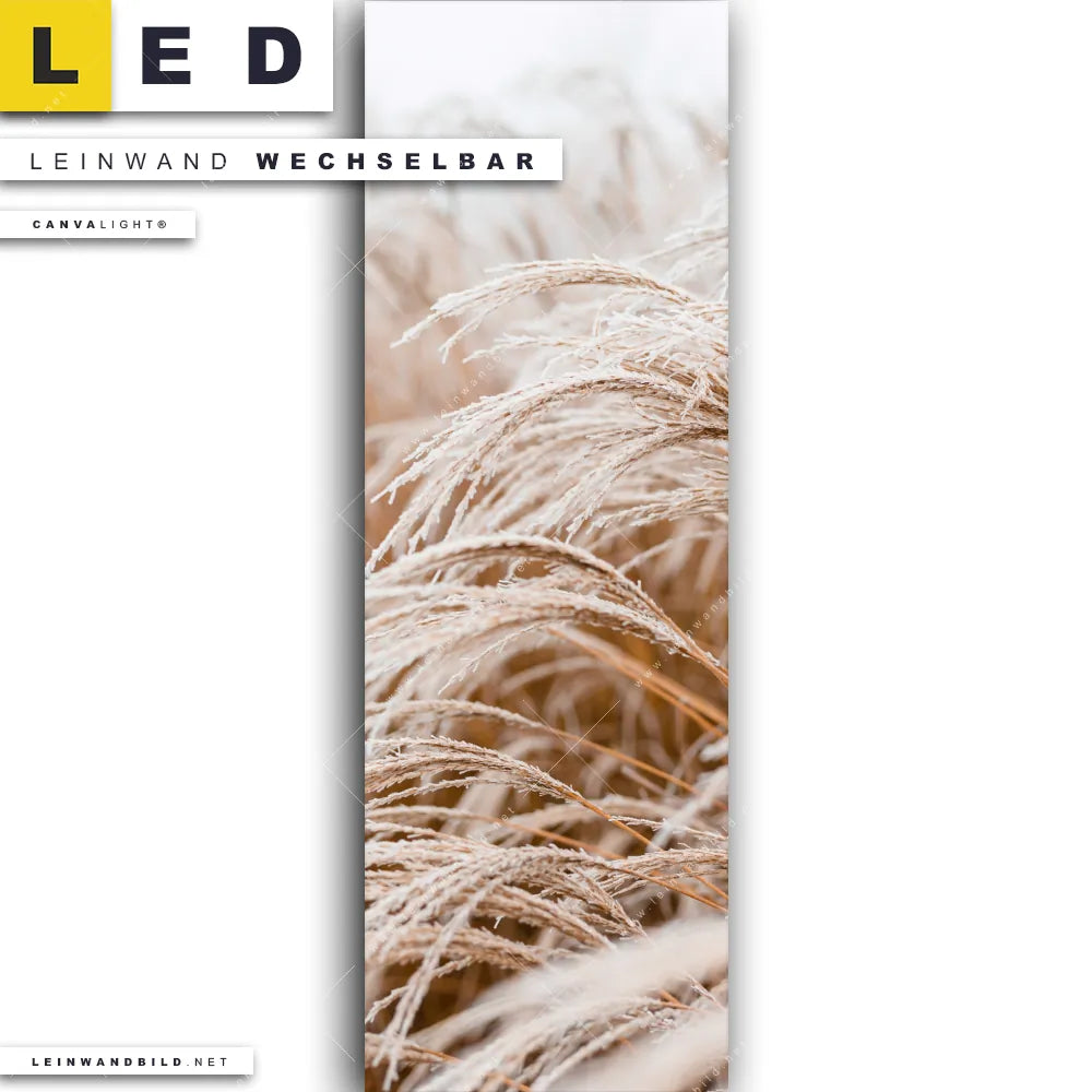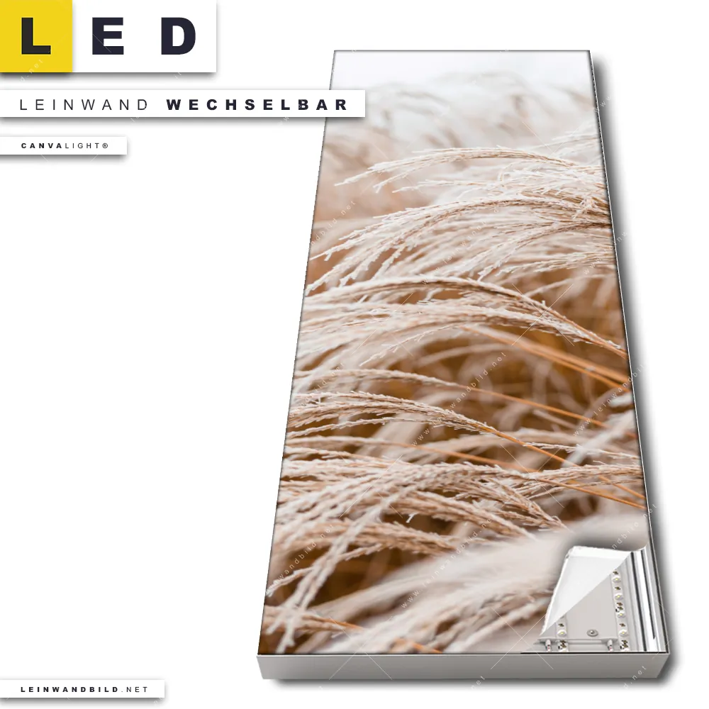Du bist auf der Suche nach einem Blumen - Botanik LED Leinwandbild im Schmalen Format? Begriffe wie Blume, Botanik, Pflanze, Natur, Nahaufnahme, Pampasgras, Gräser, Getreide haben Dich auf der Suche nach Deinem neuen XXL LED Wandbild mit wechselbarer Leinwand inspiriert? Farben wie Beige, Weiss, Braun dürfen auf Deinem neuen Leinwand-LED-Bild im Panorama-Hochformat nicht fehlen und Leuchtbilder im Retro - Vintage, Minimalistisch, Natürlich - Realistisch Stil passen perfekt zu Deinem Einrichtungsstil?