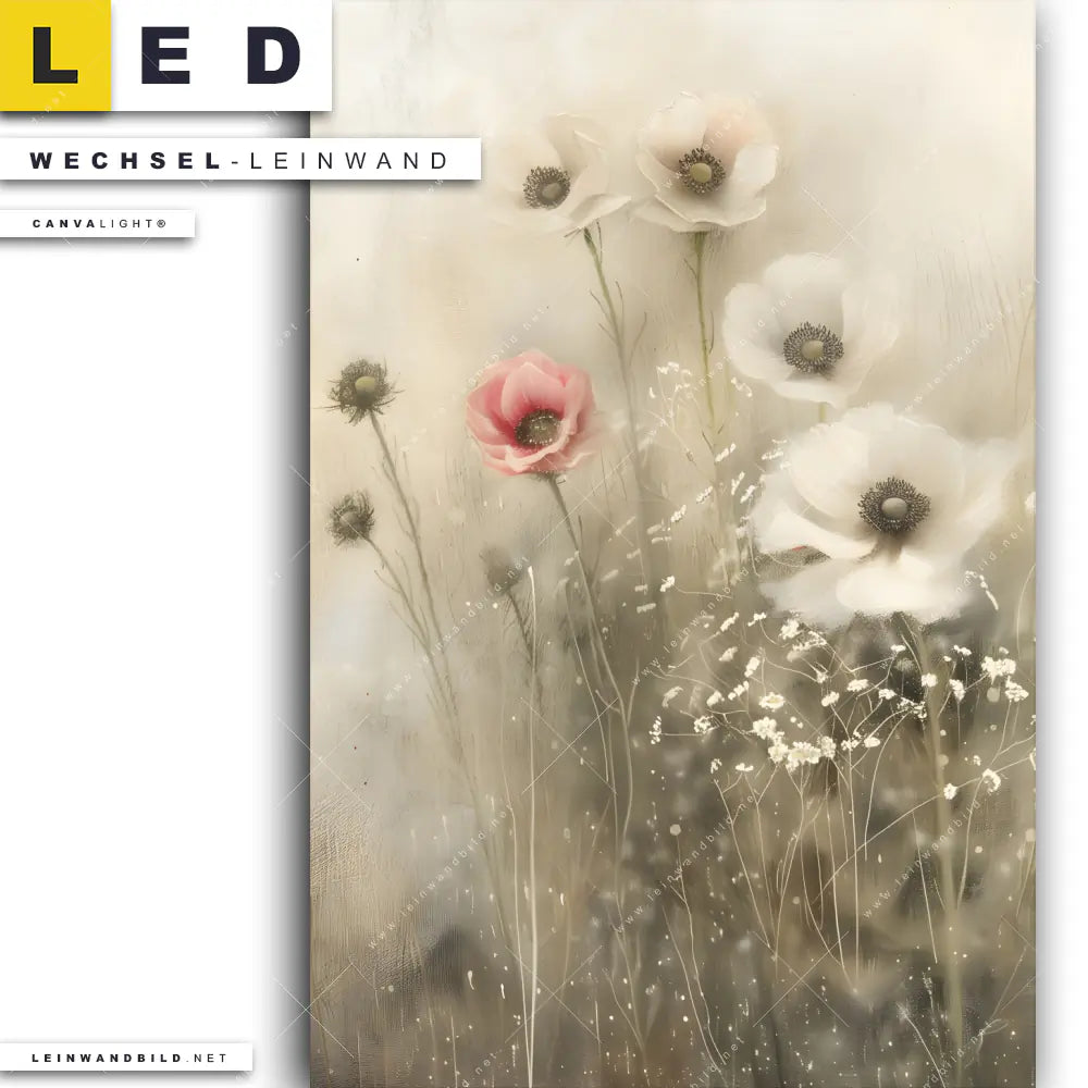 LED Wechsel-Leinwand Canvalight® TEX | Zarte Wildblumen in Pastelltönen | Hochformat