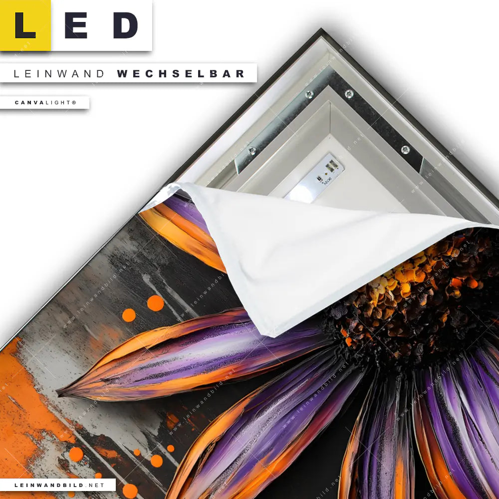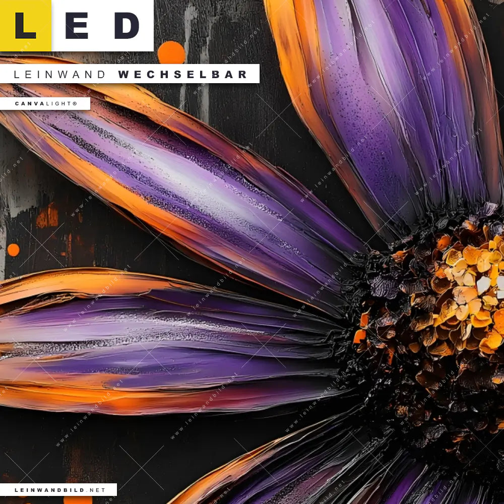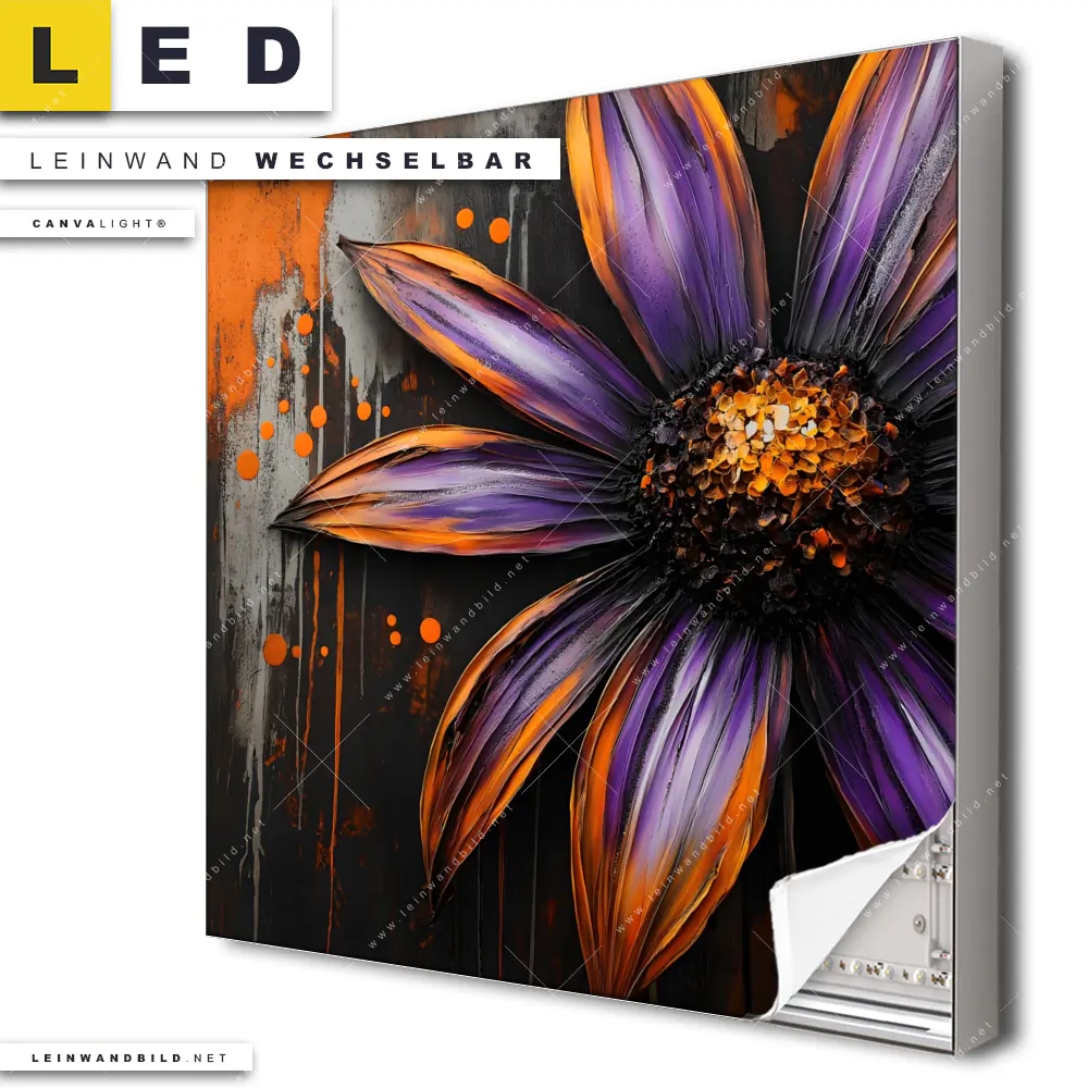 LED Leinwandbild Canvalight® TEX | Abstrakte Blume in Orange & Lila | Quadrat