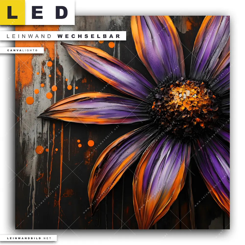 Du bist auf der Suche nach einem Blumen - Botanik LED Leinwandbild im Quadratischen Format? Begriffe wie Pflanze, Natur, Blüten, Blumen, Nahaufnahme haben Dich auf der Suche nach Deinem neuen XXL LED Wandbild mit wechselbarer Leinwand inspiriert? Farben wie Schwarz, Lila, Orange, Grau dürfen auf Deinem neuen Leinwand-LED-Bild nicht fehlen und Leuchtbilder im Floral, Grunge, Abstrakt Stil passen perfekt zu Deinem Einrichtungsstil?