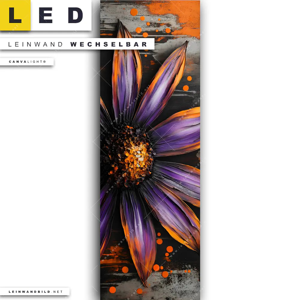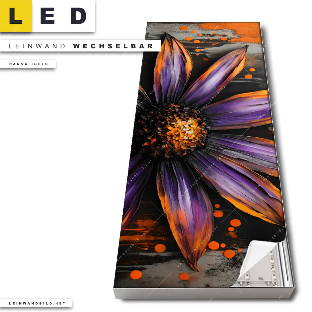 LED Leinwandbild Canvalight® TEX | Abstrakte Blume in Orange & Lila | Schmal