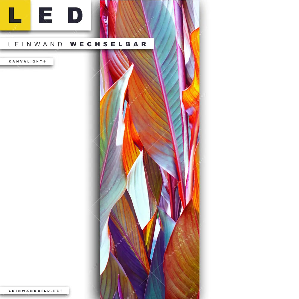 LED Leinwandbild Canvalight® TEX | Blätter in bunten Farben | Schmal