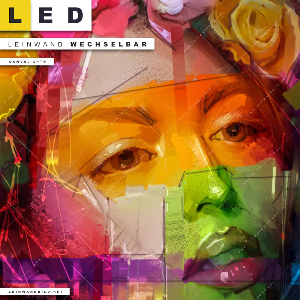 Du bist auf der Suche nach einem Porträts - Menschen, Blumen - Botanik LED Leinwandbild im Schmalen Format? Begriffe wie Menschen & Blumen, Frau, Porträt, Gesicht, Blumen, Blüten, Frisur, Haare haben Dich auf der Suche nach Deinem neuen XXL LED Wandbild mit wechselbarer Leinwand inspiriert? Farben wie Bunt dürfen auf Deinem neuen Leinwand-LED-Bild im Panorama-Hochformat nicht fehlen und Leuchtbilder im Modern Art, Floral Stil passen perfekt zu Deinem Einrichtungsstil?