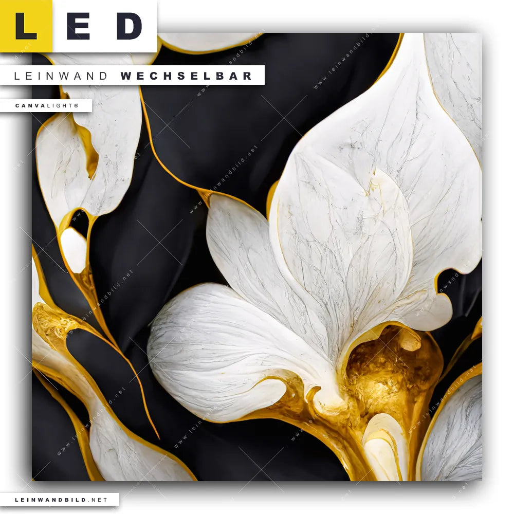 LED Leinwandbild Canvalight® TEX | Marmor Blüten in weiß & gold | Quadrat