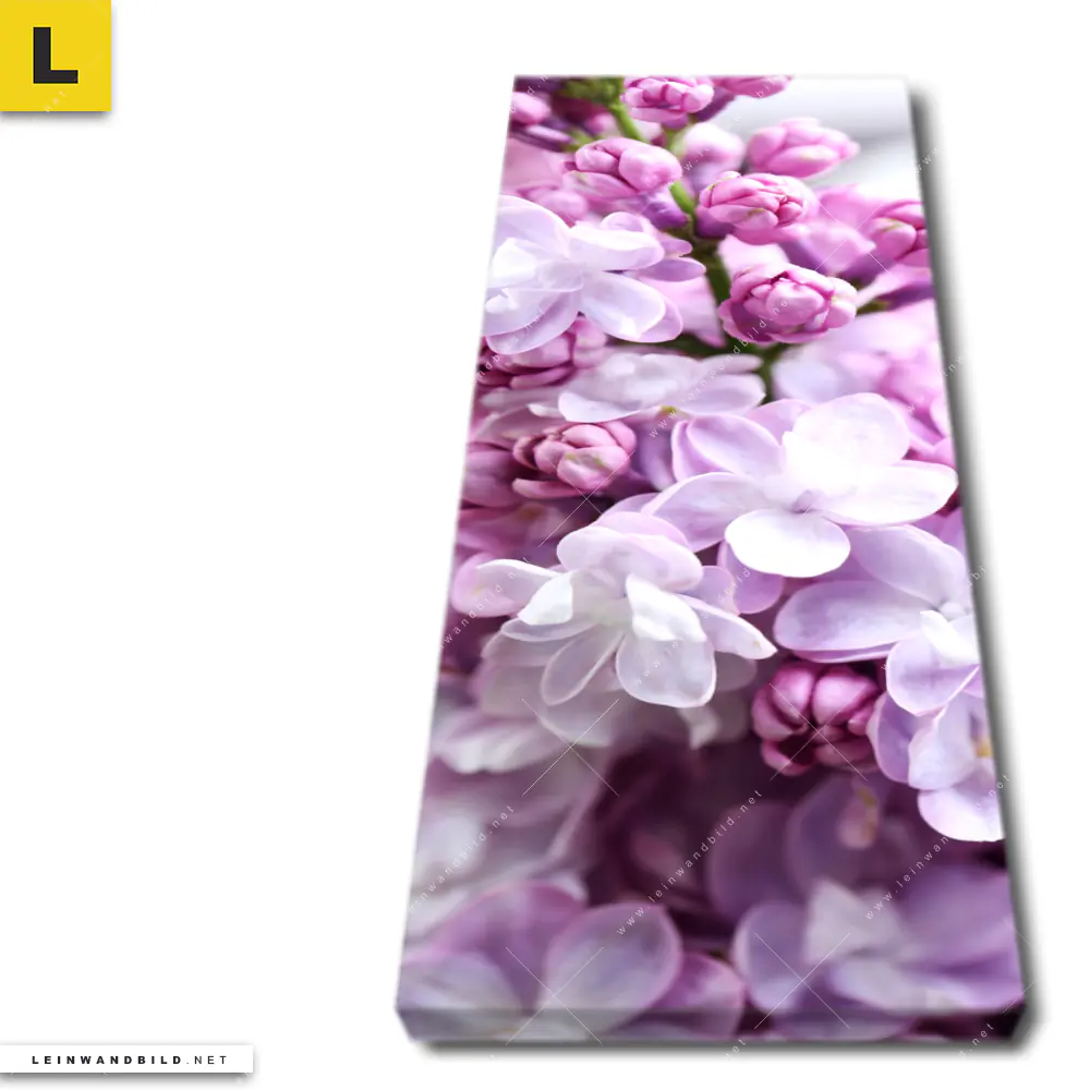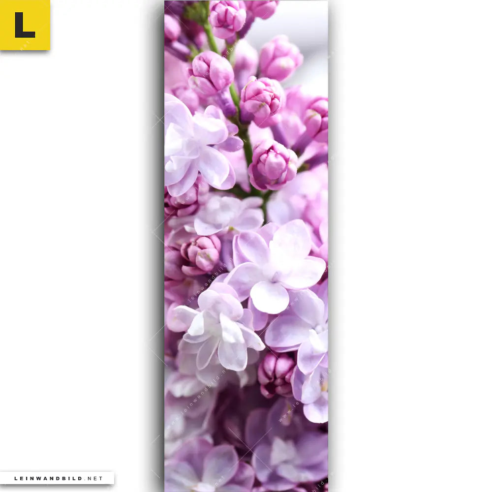 Du konfigurierst Dein individuelles Leinwandbild | Lila Fliederblüten | Schmal und wir produzieren es NEU für Dich. Unsere Blumen - Botanik Leinwände sind KEINE Lagerware. Du bist Dir unsicher, welches Motiv oder Format das richtige für dein individuelles Keilrahmenbild ist, dann helfen wir dir gerne weiter und beraten dich!
