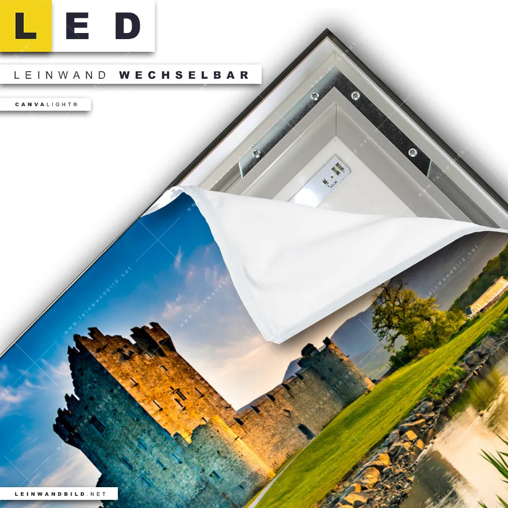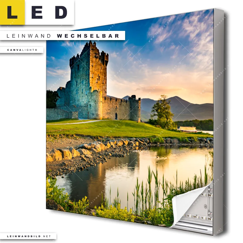 Du konfigurierst Dein individuelles LED Leinwandbild Canvalight® TEX | Alte Burg mit See | Quadrat und wir produzieren es NEU für Dich. Unsere Architektur - Gebäude, Landschaften LED Bilder mit wechselbarer Textil-Leinwand sind KEINE Lagerware. Du bist Dir unsicher, welches Motiv oder Format das richtige für dein individuelles Canvalight® Leuchtbild ist, dann helfen wir dir gerne weiter und beraten dich!