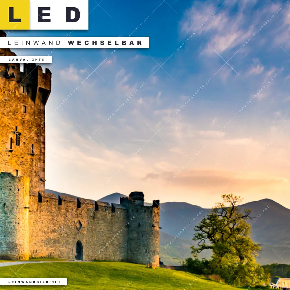 Du bist auf der Suche nach einem Architektur - Gebäude, Landschaften LED Leinwandbild im Quadratischen Format? Begriffe wie Schottland, Burg, Festung, Landschaft, See, Fluss haben Dich auf der Suche nach Deinem neuen XXL LED Wandbild mit wechselbarer Leinwand inspiriert? Farben wie Blau, Grün, Grau , Gelb dürfen auf Deinem neuen Leinwand-LED-Bild nicht fehlen und Leuchtbilder im Natürlich - Realistisch Stil passen perfekt zu Deinem Einrichtungsstil?