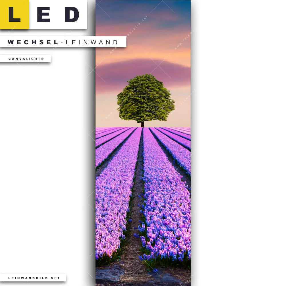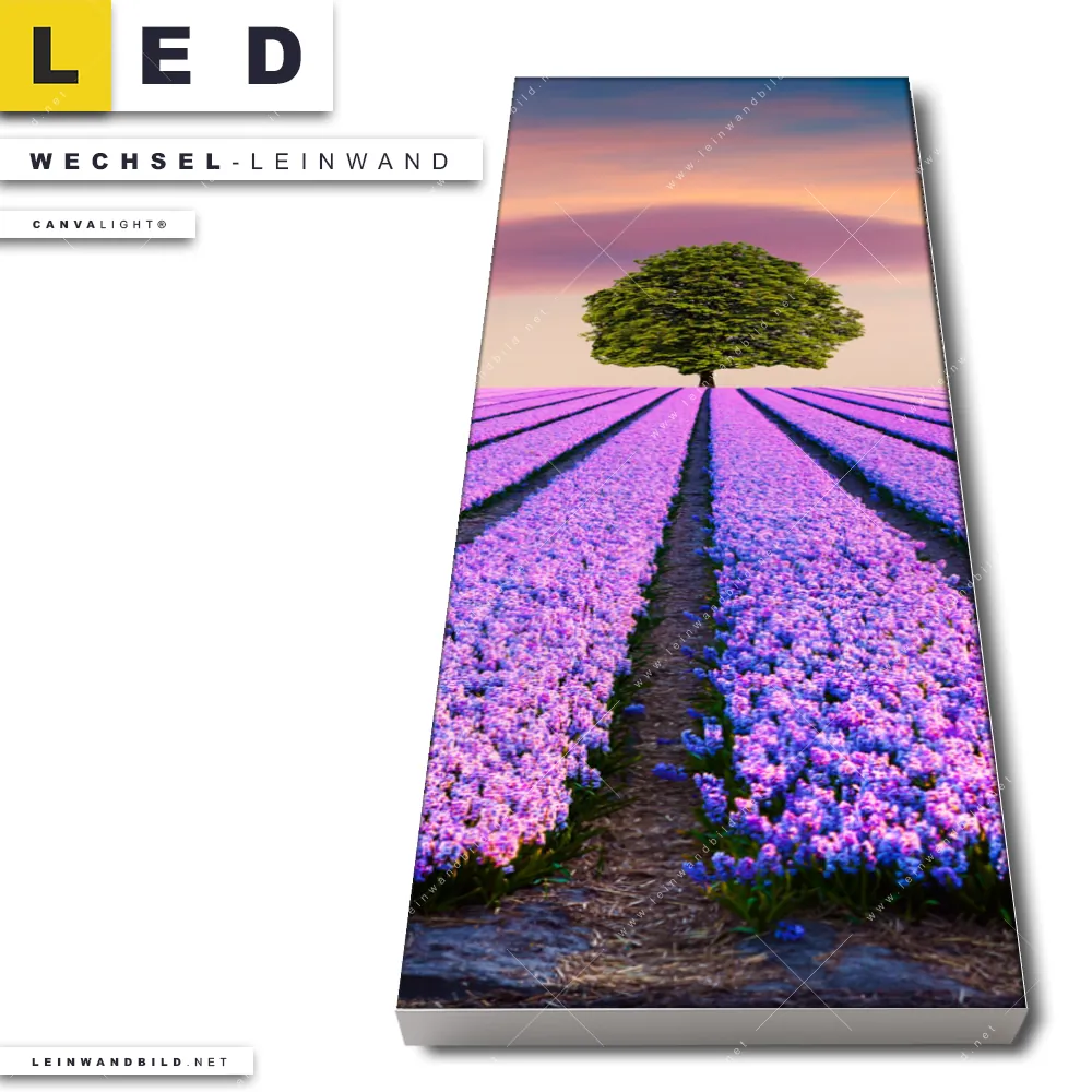 Du bist auf der Suche nach einer Landschaften Wechsel-Leinwand für Dein LED-Leinwandbild im Schmalen Format? Begriffe wie Blumen, Baum, Feld, Sonnenuntergang, Wiese, Himmel, Hyazinthenblumen, Hyazinthen haben Dich auf der Suche nach Deiner Ersatz-Leinwand für dein LED Wandbild im Panorama-Hochformat mit wechselbarer Leinwand inspiriert? Farben wie Lila, Orange dürfen auf Deinem neuen Wechselmotiv für Dein XXL Leinwand-LED-Bild nicht fehlen und Leinwände im Floral, Natürlich - Realistisch Stil für Leuchtbilder passen perfekt zu Deinem Einrichtungsstil?