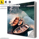 LED Wechsel-Leinwand Canvalight® TEX | Fensterblick Südsee Boote | Querformat