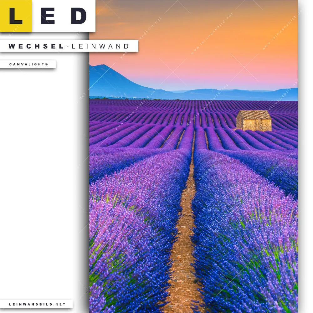 LED Wechsel-Leinwand Canvalight® TEX | Lavendel Blumen Feld | Hochformat