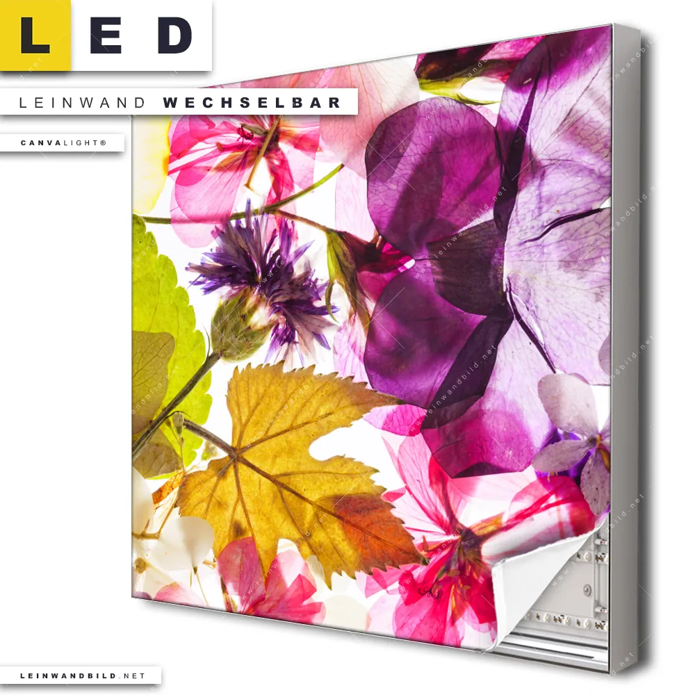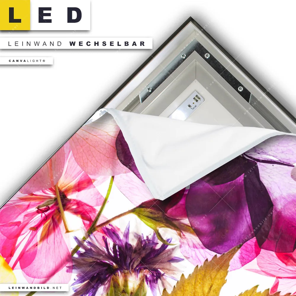 Du konfigurierst Dein individuelles LED Leinwandbild Canvalight® TEX | Blumen Collage No.2 | Quadrat und wir produzieren es NEU für Dich. Unsere Blumen - Botanik LED Bilder mit wechselbarer Textil-Leinwand sind KEINE Lagerware. Du bist Dir unsicher, welches Motiv oder Format das richtige für dein individuelles Canvalight® Leuchtbild ist, dann helfen wir dir gerne weiter und beraten dich!