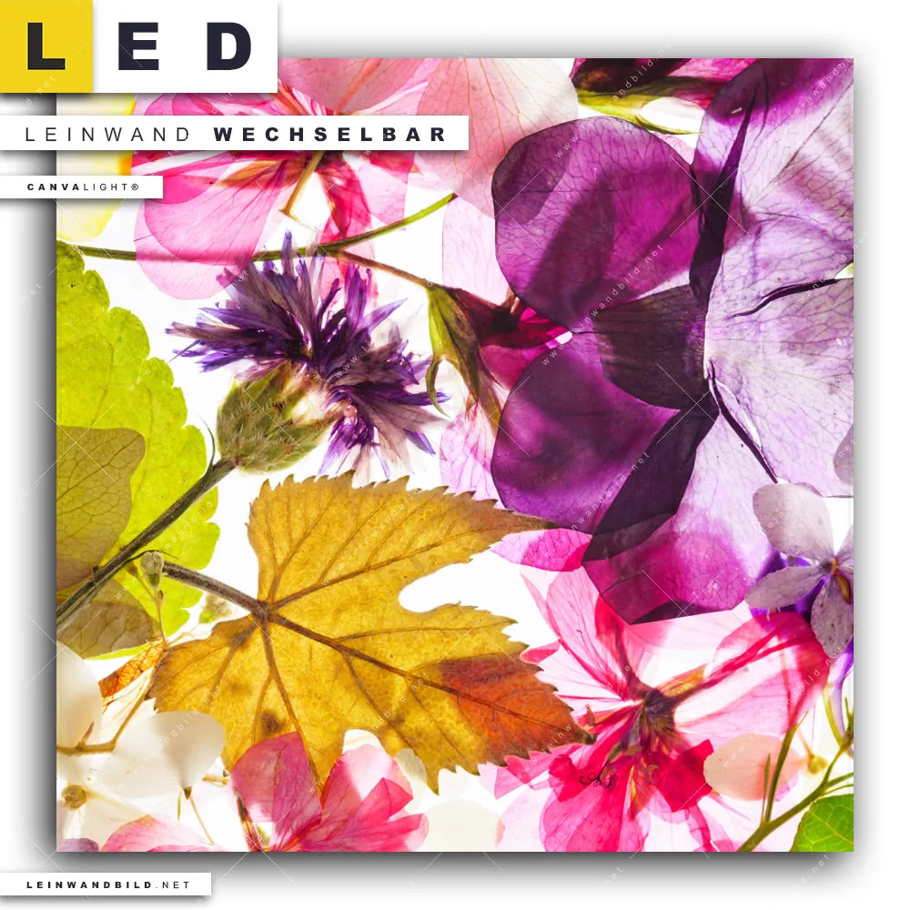 Du bist auf der Suche nach einem Blumen - Botanik LED Leinwandbild im Quadratischen Format? Begriffe wie Pflanze, Natur, Blüte, Nahaufnahme, Draufsicht, vintage, Blumen, Blätter haben Dich auf der Suche nach Deinem neuen XXL LED Wandbild mit wechselbarer Leinwand inspiriert? Farben wie Beige, Braun, Orange, Ocker, Lila dürfen auf Deinem neuen Leinwand-LED-Bild nicht fehlen und Leuchtbilder im Floral, Natürlich - Realistisch, Mixed Media Stil passen perfekt zu Deinem Einrichtungsstil?