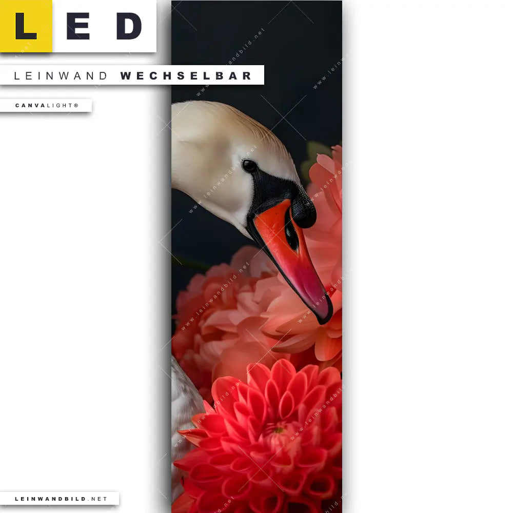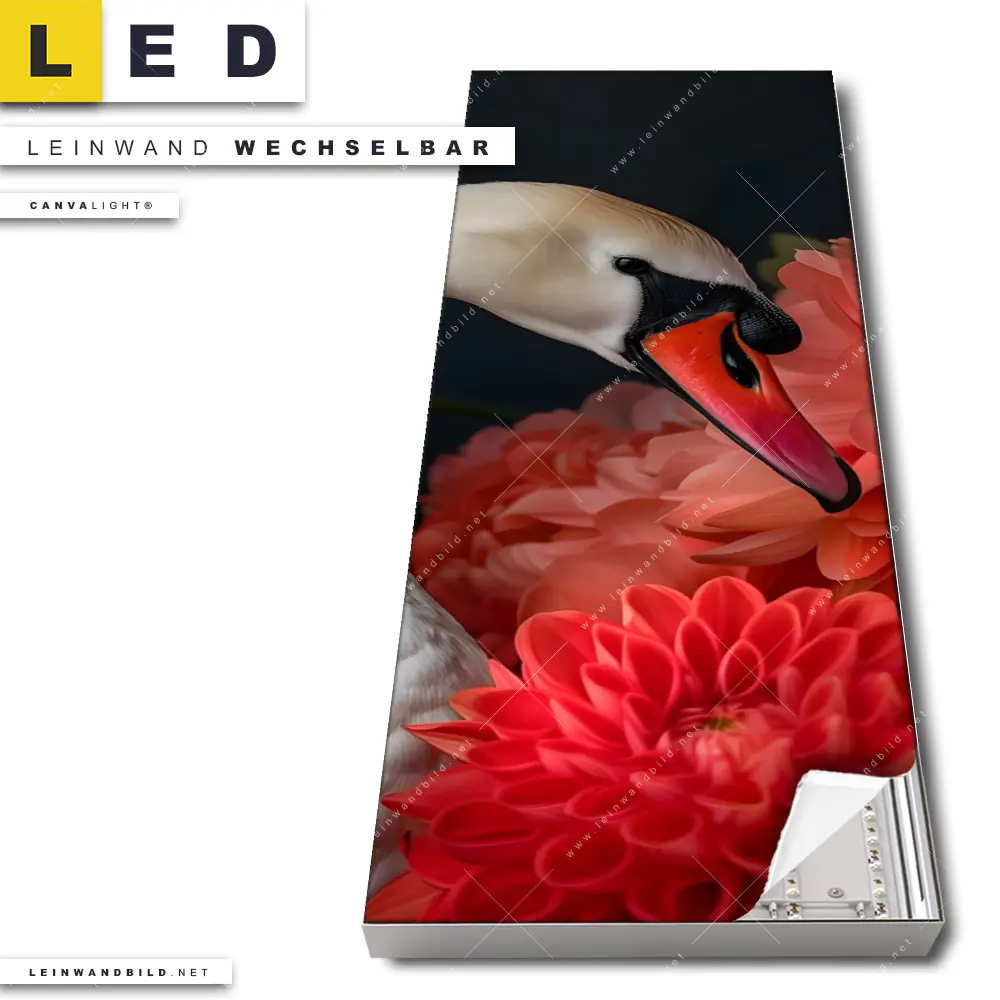LED Leinwandbild Canvalight® TEX | Eleganter Schwan mit Blumen | Schmal