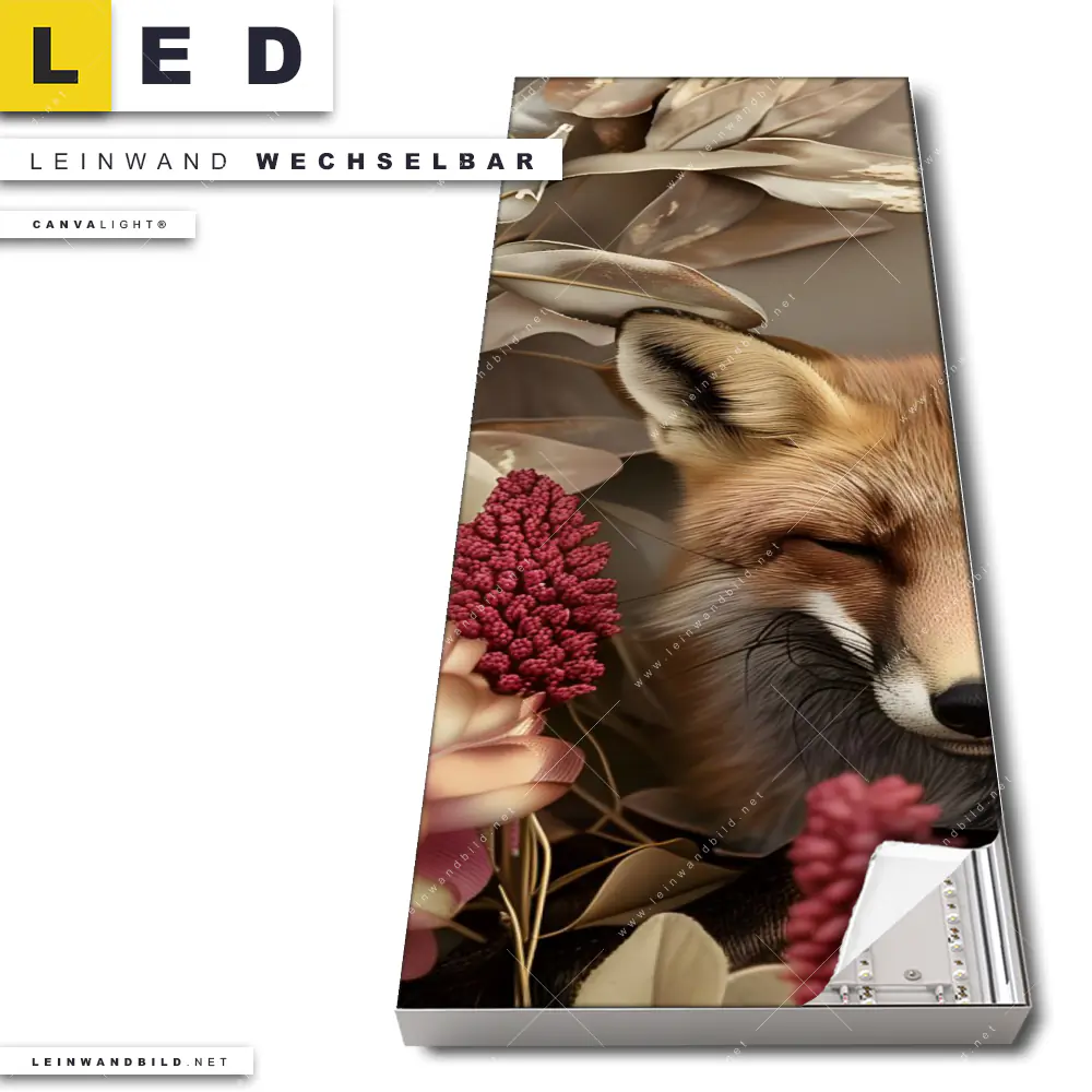 LED Leinwandbild Canvalight® TEX | Naturbild Fuchs und Blumen | Schmal