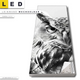LED Leinwandbild Canvalight® TEX | Schwarz-Weiß Eulenportrait | Panorama