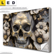 Bitte beachte, dass die Farben, der auf dem Monitor abgebildeten Skelettkopf - Blumen und Tod Darstellung, möglicherweise von den Originalfarben deines LED Leinwandbildes abweichen können.
