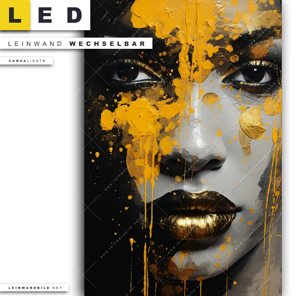 LED Leinwandbild Canvalight® TEX | Frau mit Goldfarbe | Hochformat