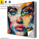 Bitte beachte, dass die Farben, der auf dem Monitor abgebildeten Ausdrucksstarkes buntes Frauenporträt Darstellung, möglicherweise von den Originalfarben deines LED Leinwandbildes abweichen können.
