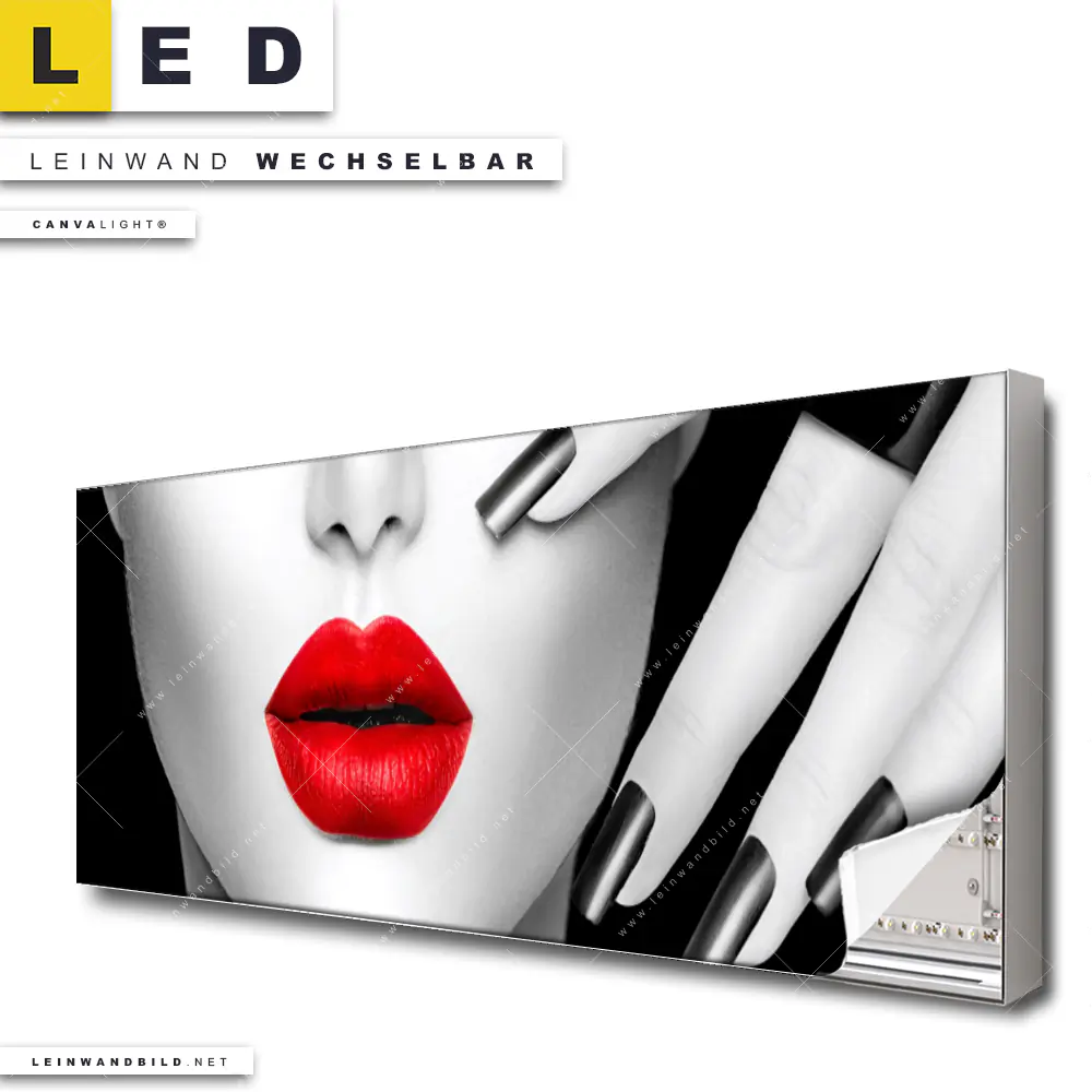 LED Leinwandbild Canvalight® TEX | Schwarze Eleganz & rote Lippen | Panorama