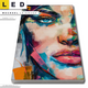 Bitte beachte, dass die Farben, der auf dem Monitor abgebildeten Ausdrucksstarkes buntes Frauenporträt Darstellung, möglicherweise von den Originalfarben deiner Canvalight® TEX Wechsel-Leinwand abweichen können.